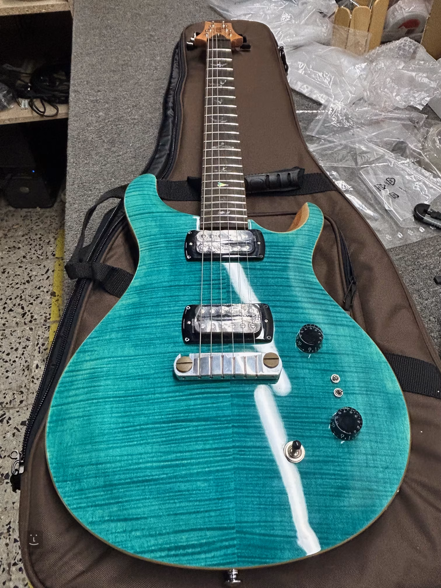 Paul's Guitar to model, który urzeczywistnia wizję P. R. Smitha dotyczącą idealnej gitary elektrycznej pod względem projektu, użytych materiałów, brzmienia i właściwości gry. Wersja z serii SE jest instrumentem bardziej przystępnym cenowo, pozbawionym luksusowych elementów gitar produkowanych w USA, ale nadal oferującym funkcje zarezerwowane wcześniej wyłącznie dla luksusowych i znacznie droższych modeli z serii Private Stock i Core. Gitara elektryczna SE Paul's Guitar Turquiose już na pierwszy rzut oka przyciąga ergonomicznie ukształtowanym mahoniowym korpusem z typowym podwójnym wycięciem PRS, rzeźbionym klonowym topem i efektowną okleiną z klonu fladrowanego. Wycięcie Shallow Violin carve zbliża właściwości gry tego instrumentu do droższych amerykańskich modeli serii Core. Do mahoniowego gryfu o profilu Wide Fat przyklejono palisandrowy podstrunnicę z dwudziestoma progami, ozdobioną tradycyjnymi znacznikami pozycji PRS z sylwetkami ptaków. Para firmowych humbuckerów zapewnia gitarze czysty dźwięk, który oprócz pełności humbuckerów, dzięki dwóm mini przełącznikom coil-tap, oferuje również uderzenie single-coilów lub pełniejszy dźwięk przetworników soapbar. Charakter dźwięku można regulować za pomocą standardowych pokręteł. Struny są zamocowane w strunociągu (PRS Stoptail) i firmowych stroikach w stylu vintage. Gitara jest dostarczana w pokrowcu (gig bag).