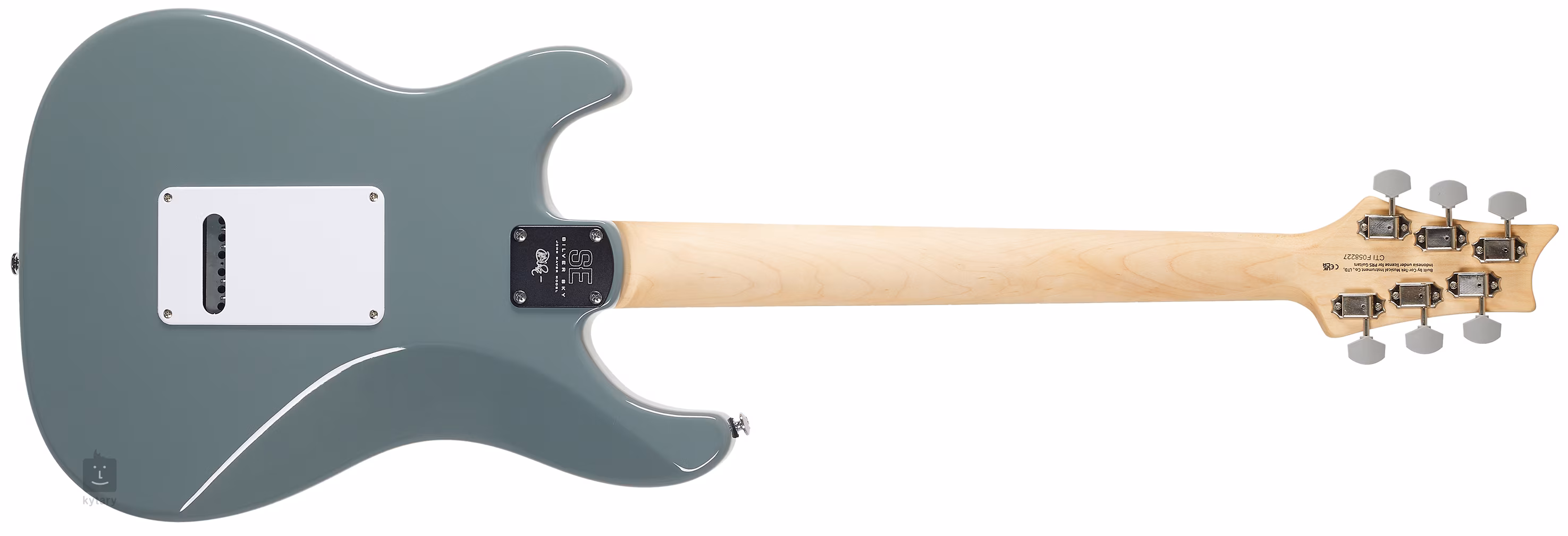 Korpus modelu PRS SE Silver Sky Rosewood Storm Gray wykonany jest z topoli. Palisandrowa podstrunnica z dwudziestoma dwoma progami jest przyklejona do przykręconej szyjki z klonu. Szyjka posiada oryginalne wycięcie/profil 635JM, a znaczniki pozycji w postaci sylwetek ptaków ułatwiają orientację na powierzchni podstrunnicy.