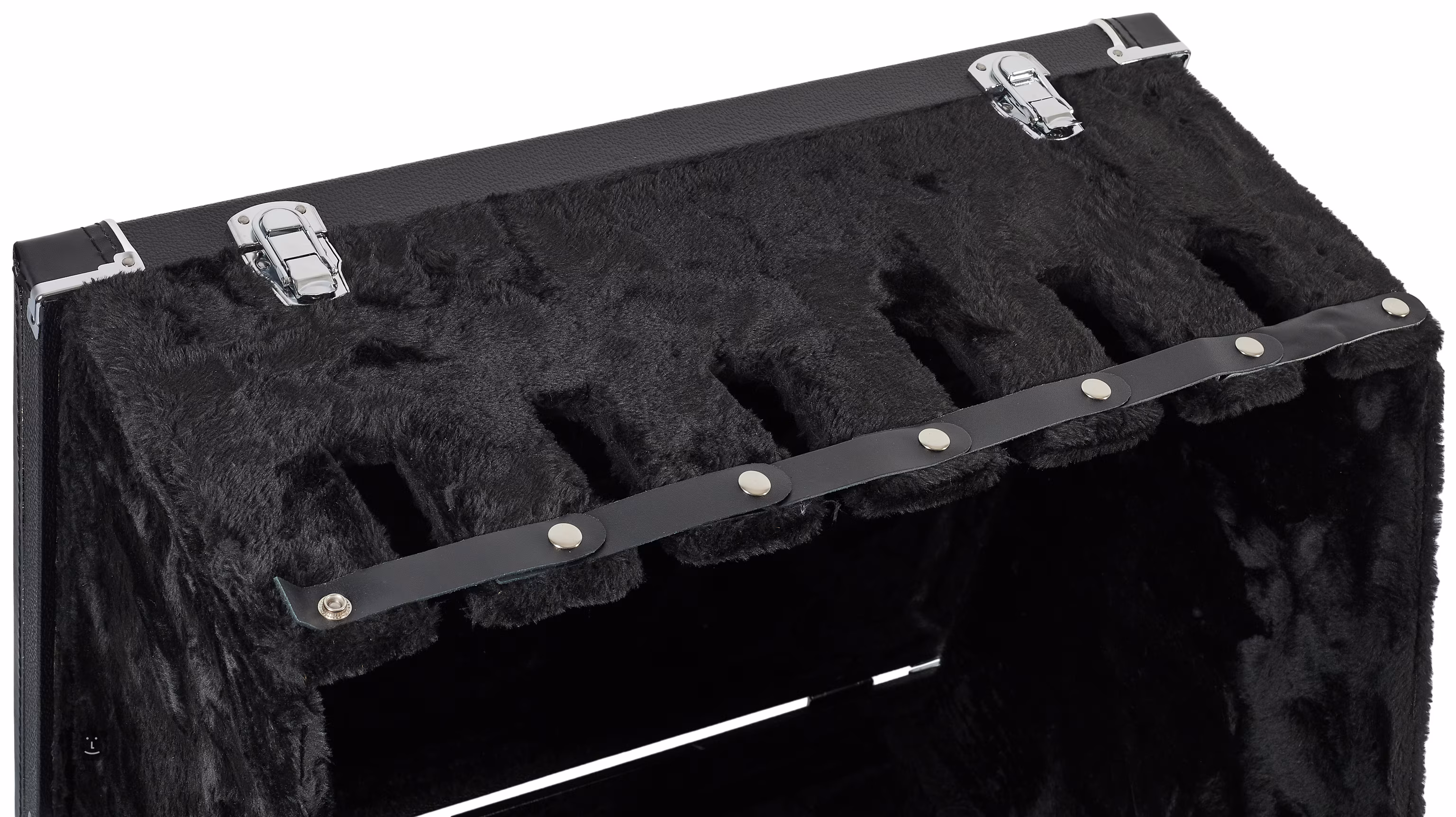 Ten elegancki futerał od Razzor zawiera niespodziankę w postaci praktycznego stojaka na narzędzia. Jego wyściełane wnętrze jest w stanie zapewnić niezbędną przestrzeń i komfort dla sześciu gitar elektrycznych lub basowych. Po złożeniu zajmuje minimalną ilość miejsca, co czyni go idealnym wyborem dla podróżujących muzyków.
