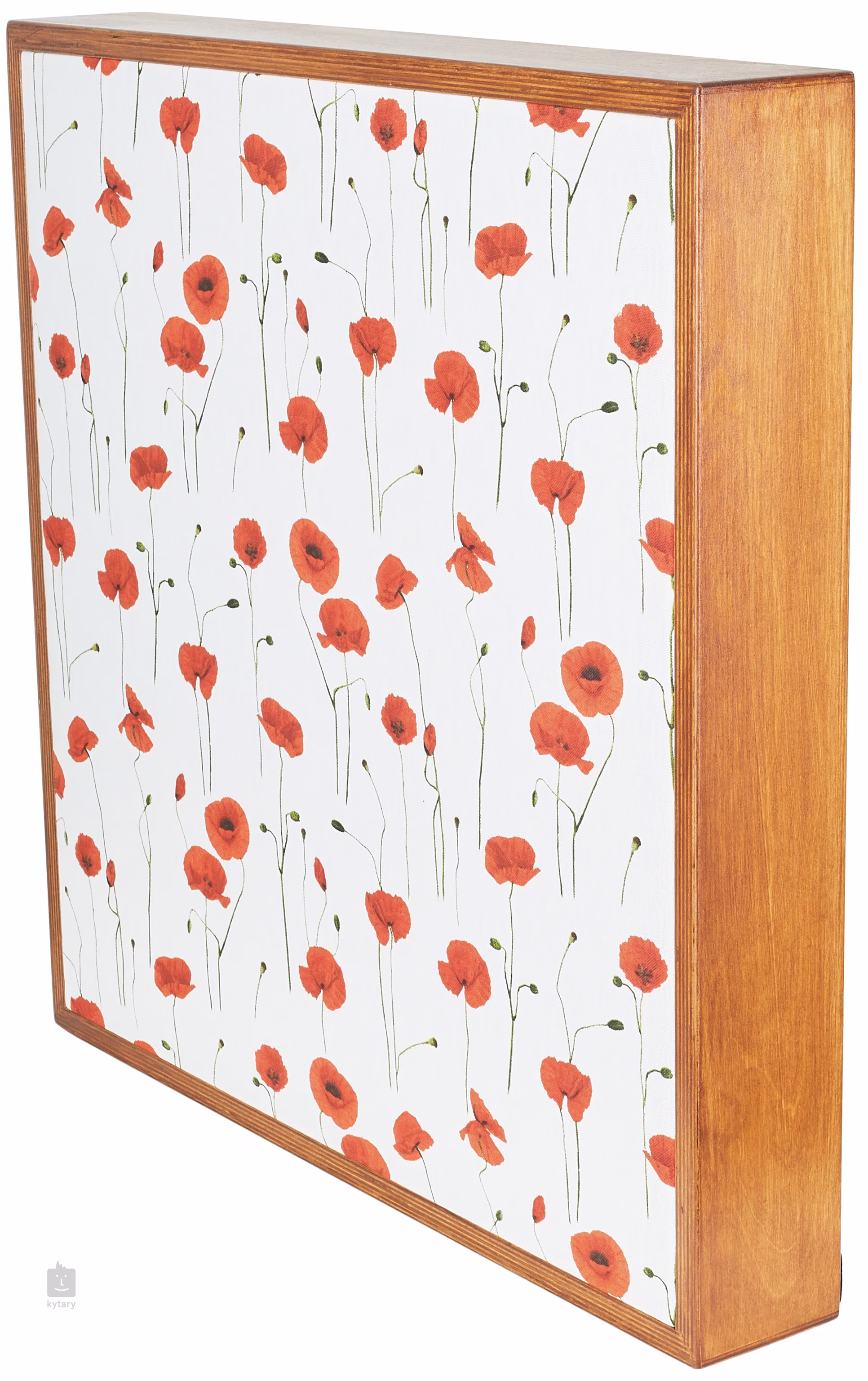 Konstrukcja: rama z miodowym wykończeniem 600 x 600 x 100 mm Materiał pochłaniający: Envizol TB OH 50, 50 kg/m3 Motyw tkaniny: maki