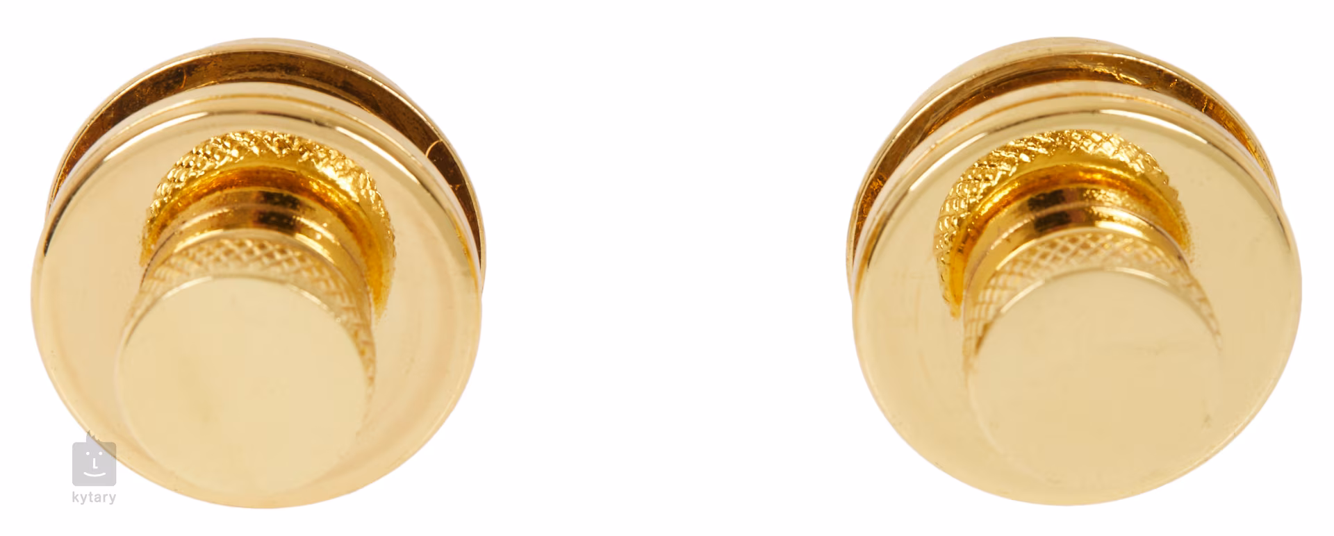 Zestaw blokad zabezpieczających Razzor w kolorze złotym, które zapobiegają wysunięciu się narzędzia z paska i jego uszkodzeniu. Pasuje do wszystkich pasków gitarowych i basowych.