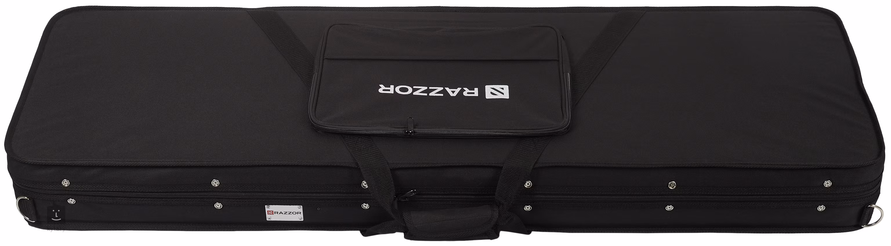 Ten półsztywny futerał na bas elektryczny Razzor został zaprojektowany w celu ochrony instrumentu przed uszkodzeniami mechanicznymi, które mogą wynikać z upadków, uderzeń lub nieostrożnego obchodzenia się z nim. Wykonany jest z połączenia piankowej wyściółki, mikro pluszowej podszewki i pokrowca z tkaniny. Posiada wewnętrzny schowek na akcesoria i zewnętrzną kieszeń z boku pokrowca. W porównaniu do twardego etui, jego zaletą jest niższa waga. Wygodny uchwyt ułatwia transport.