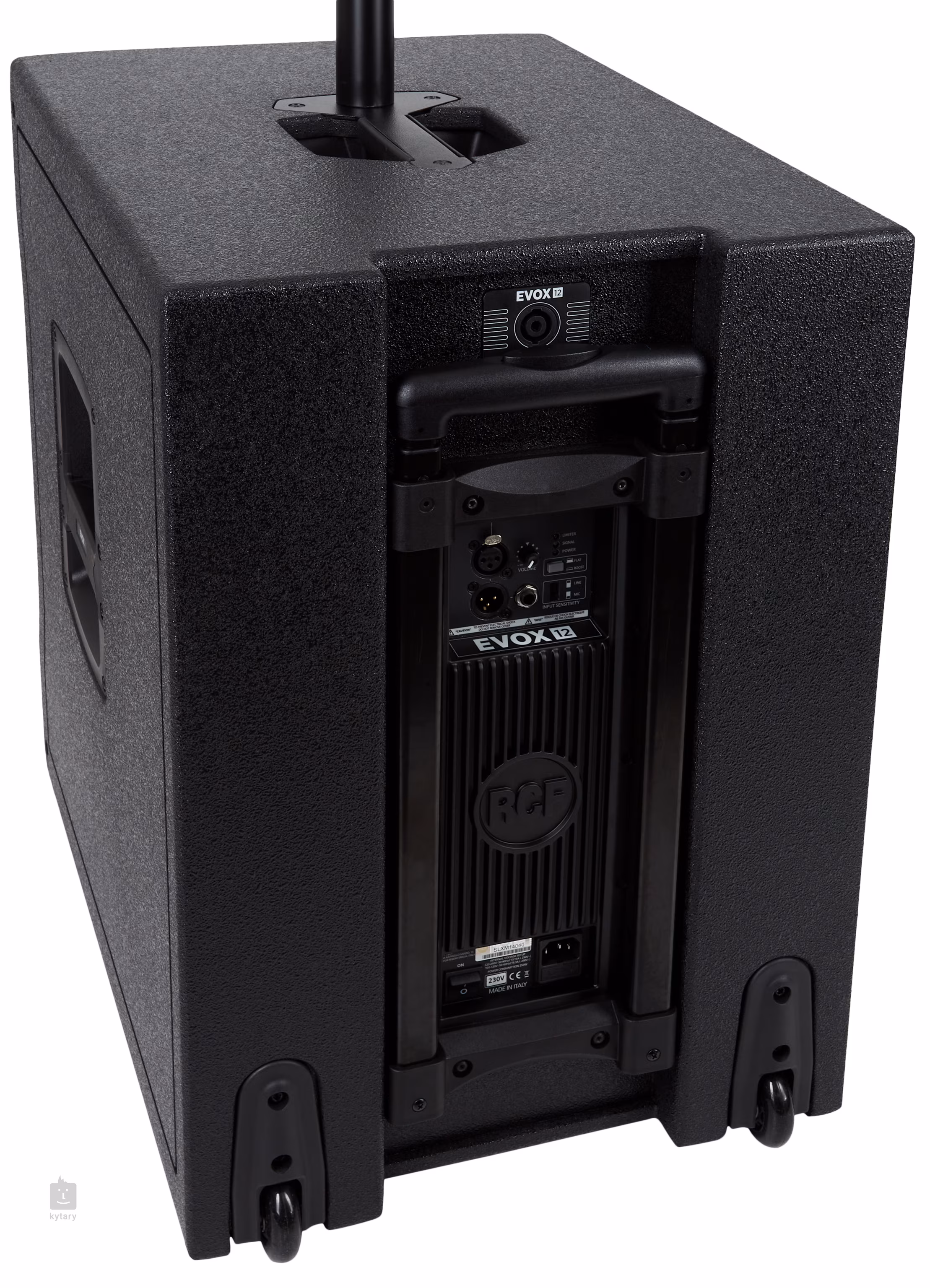 EVOX 12 to kompaktowy i przenośny system nagłośnieniowy łączący jakość głośników RCF z wysokiej klasy wzmacniaczami. W skład systemu wchodzi osiem 4-calowych głośników pełnozakresowych zamontowanych w satelicie oraz potężny 15-calowy głośnik niskotonowy w obudowie typu bass-reflex. Wyjątkowa jakość głosu sprawia, że EVOX 12 jest idealnym narzędziem do wykorzystania na imprezach firmowych i kongresach, ale jednocześnie system EVOX 12 może być wykorzystywany do nagłaśniania na żywo, a także jako kompaktowy aparat dla DJ-ów.