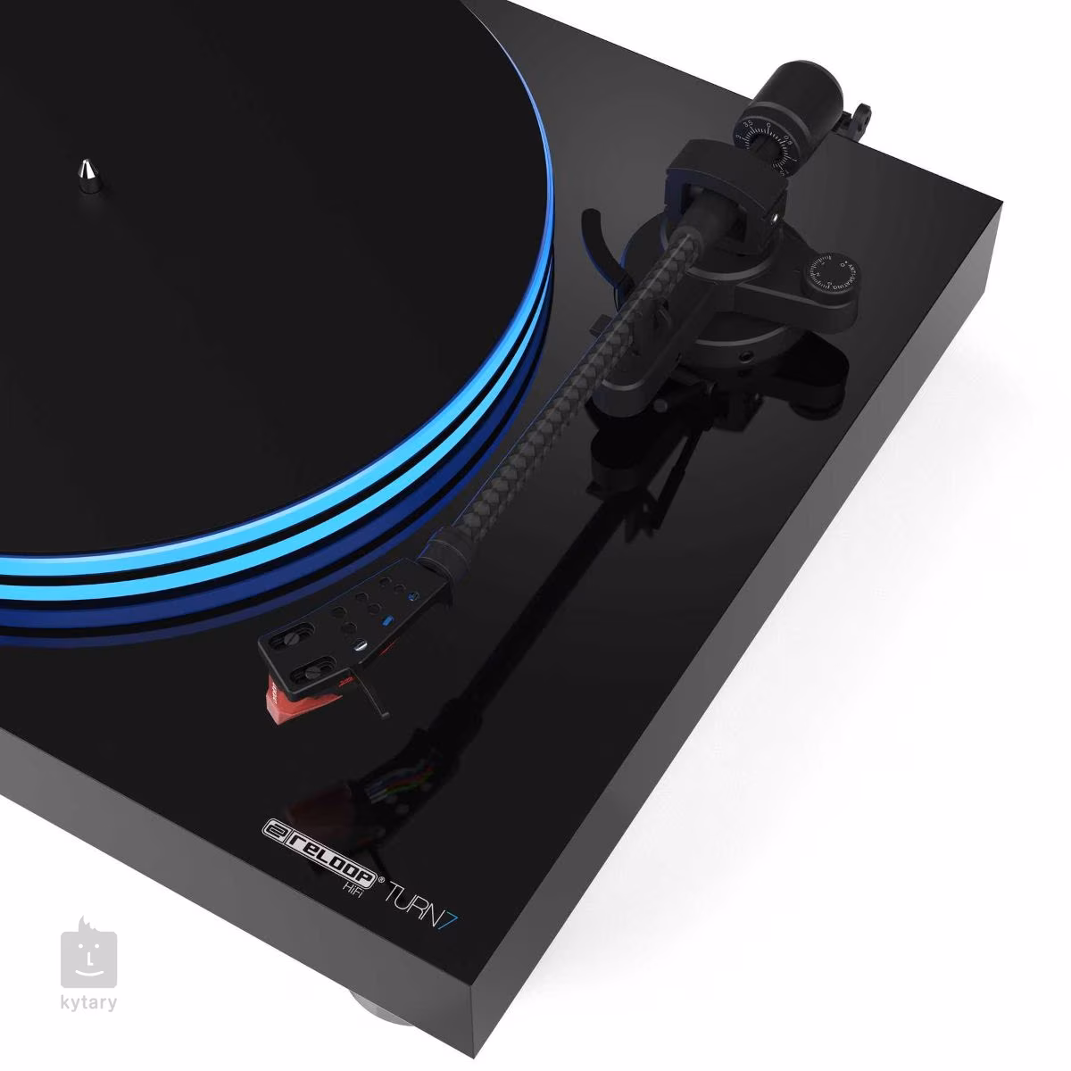Turn 7 wyposażony jest w karbonowe ram ię o wyjątkowych właściwościach akustycznych, regulowanej wysokości (VTA) i antyskatingu dla maksymalnej precyzji. W podstawowym wyposażeniu znajduje się również fabrycznie zainstalowana wkładka Ortofon 2M Red, która oferuje otwarte, dynamiczne i naturalnie ciepłe brzmienie.