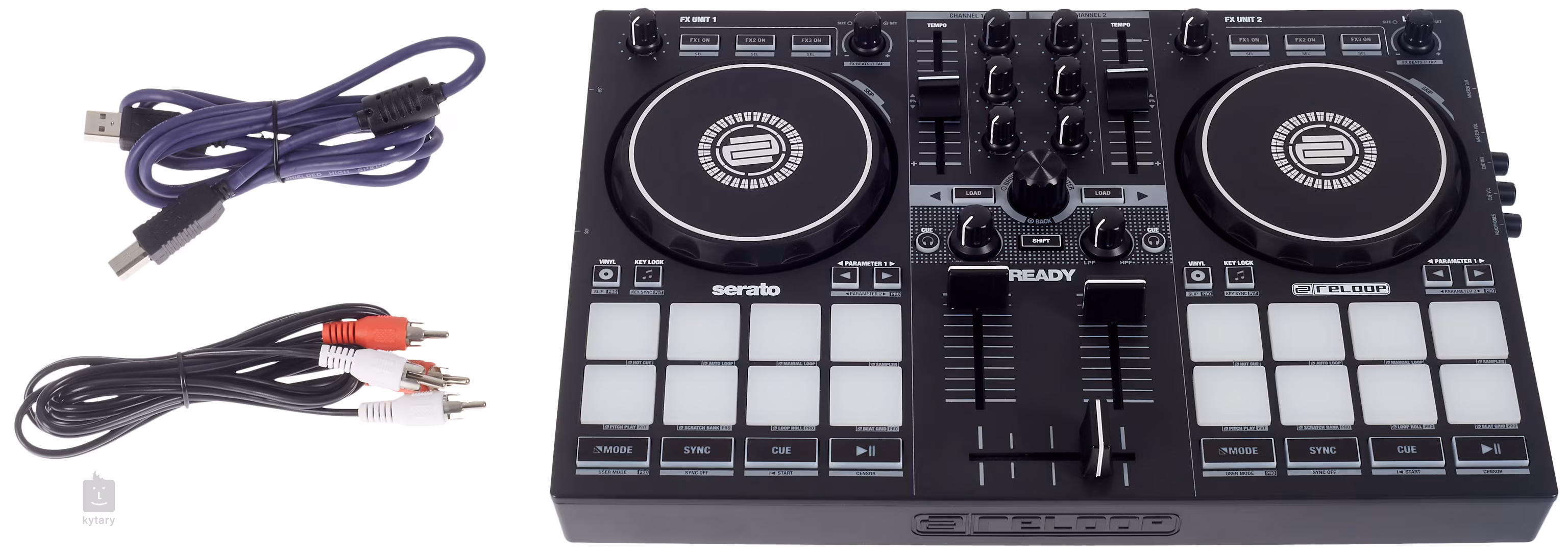 Ready by Reloop, jak sama nazwa wskazuje, to bardzo kompaktowy i intuicyjny dwukanałowy kontroler DJ-ski odpowiedni do doskonałej produkcji DJ-skiej na żywo. Pakiet zawiera SERATO DJ Lite, dzięki czemu można podłączyć kontroler do komputera i od razu zacząć żonglować bitami dzięki funkcji Plug & Play! Dzięki swojemu rozmiarowi możesz umieścić go na klawiaturze swojego 13-calowego laptopa.