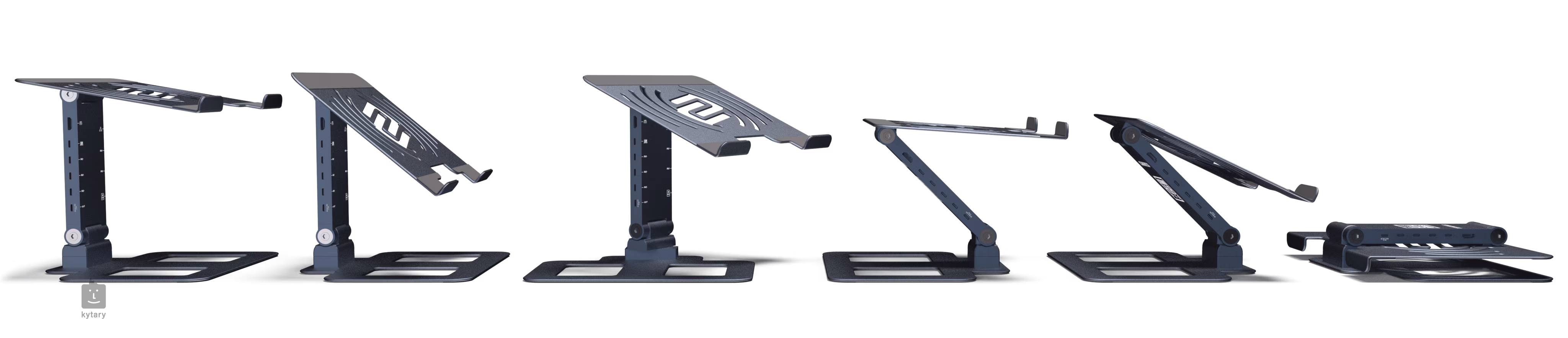 Ultrasmukła, lekka i wytrzymała aluminiowa podstawa łączy w sobie maksymalną nośność z praktycznymi funkcjami oszczędzającymi miejsce. Obrotowa podstawa umożliwia indywidualne ergonomiczne pozycjonowanie w zakresie 360°, nieskończoną regulację i możliwość bezpiecznego zakotwiczenia za pomocą wpuszczonych śrub montażowych. Antypoślizgowe podkładki pod podstawą i gumowa wyściółka na górze chronią laptopy lub tablety (8" - 15").