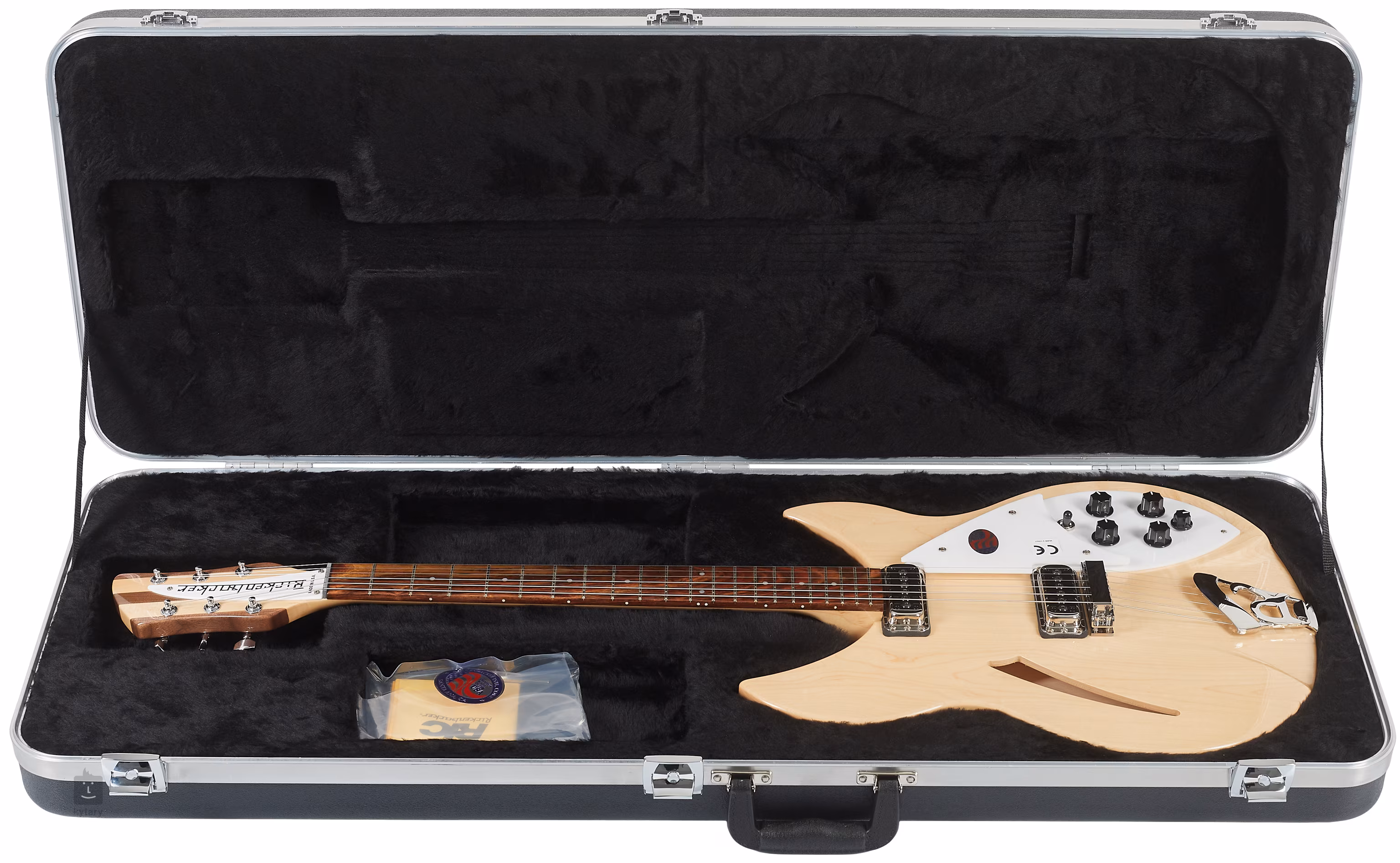 Struny są zamontowane w maszynkach do strojenia Schaller i strunnikach Rickenbacker "R". Gitara dostarczana jest w futerale.