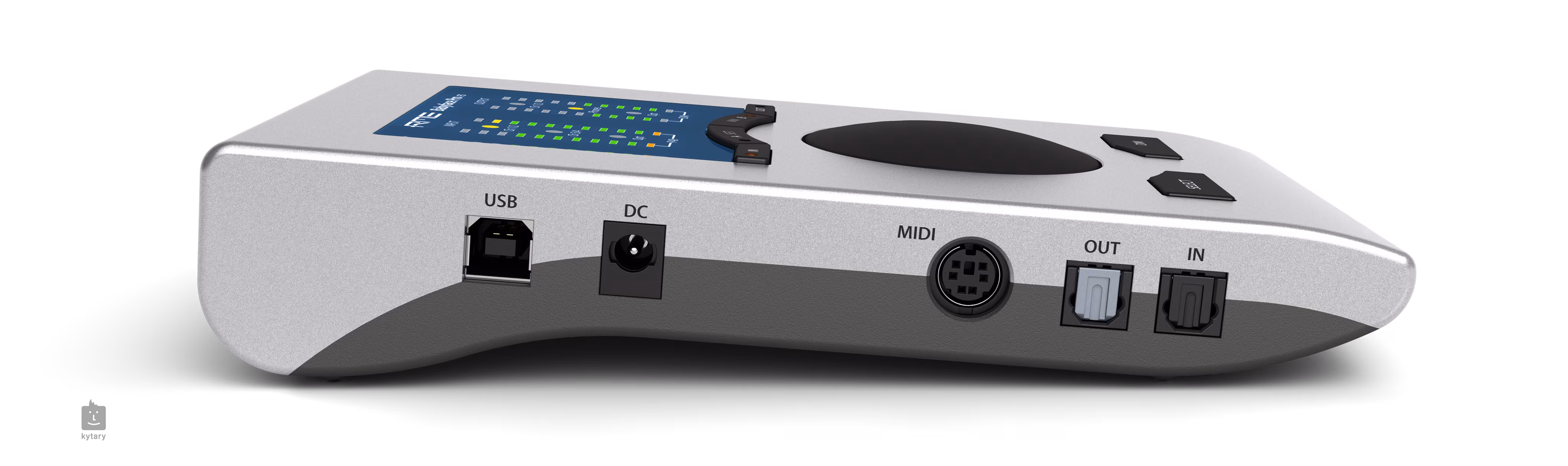 Przełącznik +19 / +4 dBu na spodzie to szybki sposób na zmniejszenie poziomu wyjściowego, poprawiając w ten sposób SNR (noise figure) dla wrażliwych monitorów aktywnych, redukując dźwięk (kliknięcia) przy włączaniu/wyłączaniu zasilania, zapobiegając zniekształceniom/przeciążeniu. Pozwala to na utrzymanie faderów w TotalMix FX w pobliżu 0 dB jako standard zamiast wysokiego tłumienia.