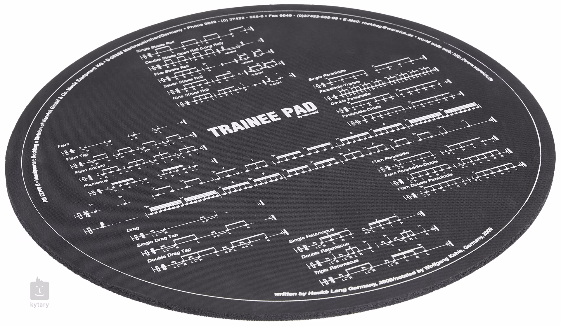 12" drum training pad. Wykonany jest z wytrzymałej gumy piankowej, która wytwarza minimalny hałas podczas gry. Dodatkowo na podkładce znajdują się wydrukowane podstawowe rytmy i ćwiczenia.