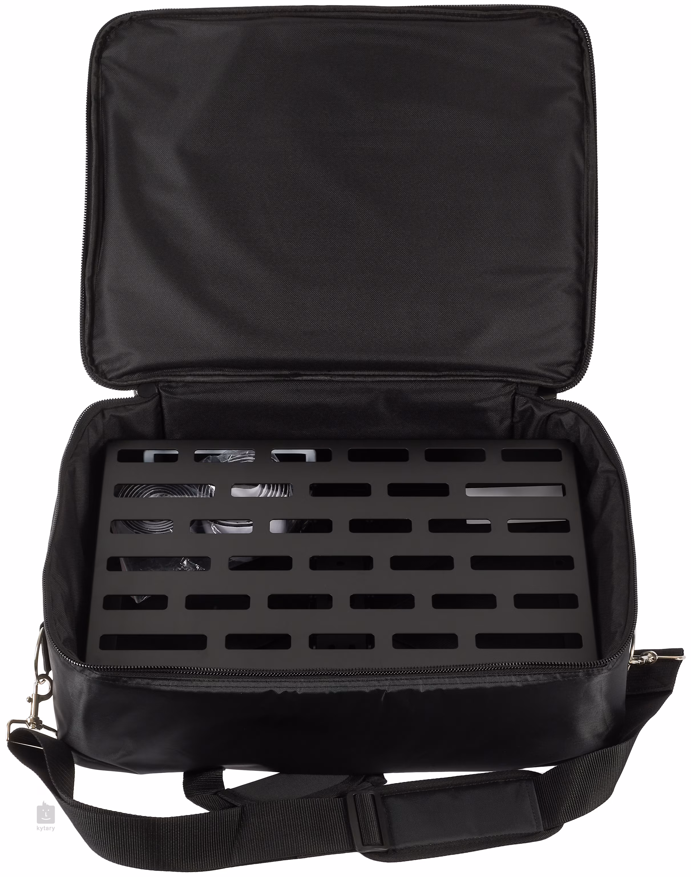 Model ten jest dostarczany z wysokiej jakości wyściełanym etui i można go połączyć z Rockboard The Tray i Rockboard Frame XL, aby zwiększyć przestrzeń do przechowywania adapterów zasilania pod pedalboardem.