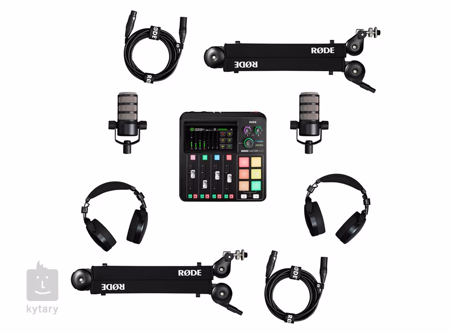 Zestaw zawiera - 1x Kompaktowe zintegrowane studio produkcji audio RODE RODECaster Duo, które łączy w sobie rewolucyjne funkcje z doskonałą jakością dźwięku, nieskończonymi opcjami dostosowywania i niezrównaną łatwością użytkowania. - 2x z bogatym, szczegółowym dźwiękiem zoptymalizowanym pod kątem podcastów i innych aplikacji lektorskich. - 2x Profesjonalne słuchawki z zamkniętym tyłem RODE NTH-100 z wyjątkowo szczegółowym, czystym, dokładnym dźwiękiem i najwyższym komfortem. - 2x Najwyższej klasy profesjonalne ramię studyjne RODE PSA1+ o niezrównanej stabilności, zmienności i eleganckim wyglądzie. - 2x Najwyższej jakości, profesjonalny przewód mikrofonowy o długości 3 m z przewodnikami Canare™ i złączami Neutrik® XLR zapewniającymi wyjątkowo czystą transmisję sygnału przy wyjątkowo niskim poziomie szumów.