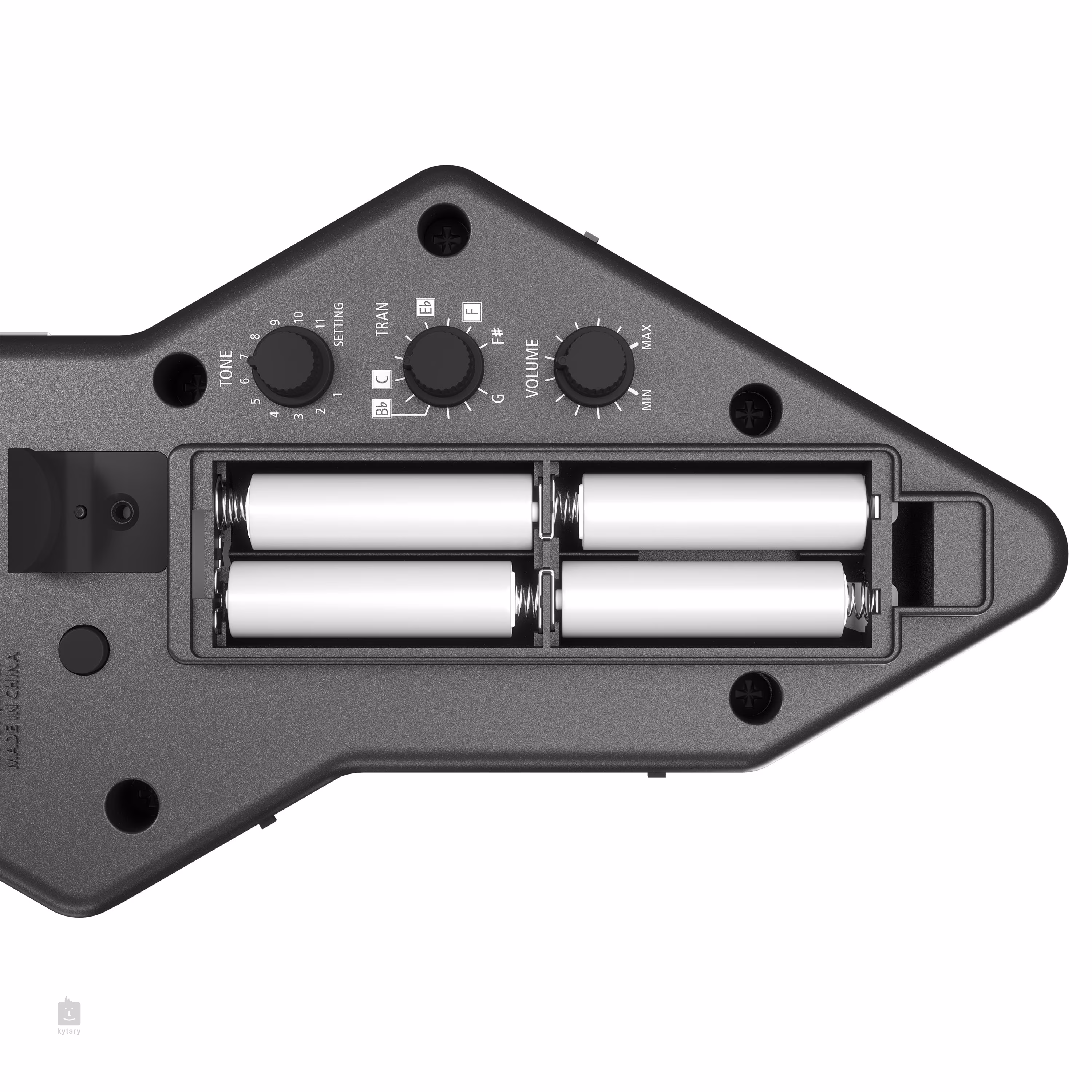 Aerophone GO jest zasilany czterema bateriami AA i waży nieco ponad pół kilograma, więc można go wszędzie ze sobą zabrać (opakowanie w zestawie).