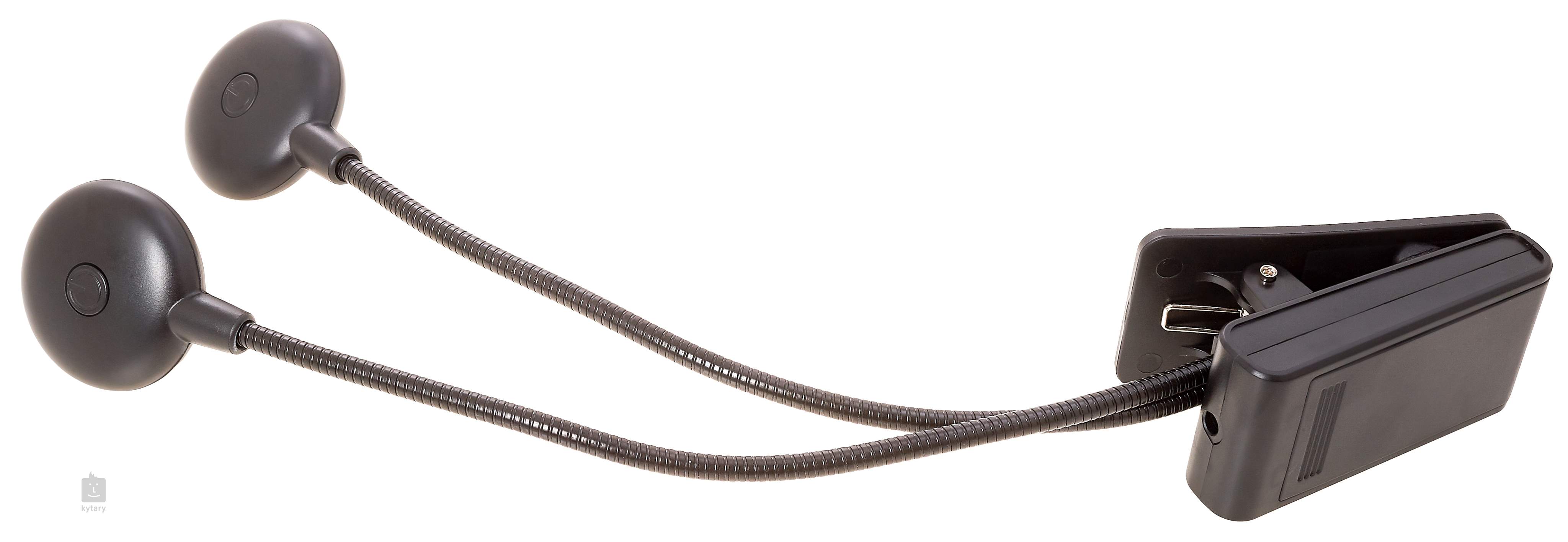 Kompaktowa lampa zaciskowa z dwoma żarówkami LED na każdym ramieniu dająca ciepłe światło. Ramiona są w pełni regulowane, a jasność światła ma dwa poziomy. Lampa zasilana jest trzema bateriami rozmiaru AAA.