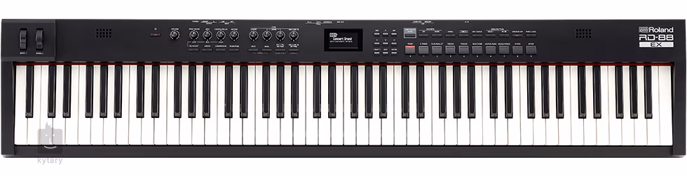 Lekka i wytrzymała konstrukcja RD-88 EX ułatwia przenoszenie go w dowolne miejsce. Wbudowane głośniki stereo zapewniają bogaty, wypełniający pomieszczenie dźwięk, więc nie ma potrzeby stosowania zewnętrznego wzmacniacza do ćwiczeń w domu, prób i występów na małych scenach.