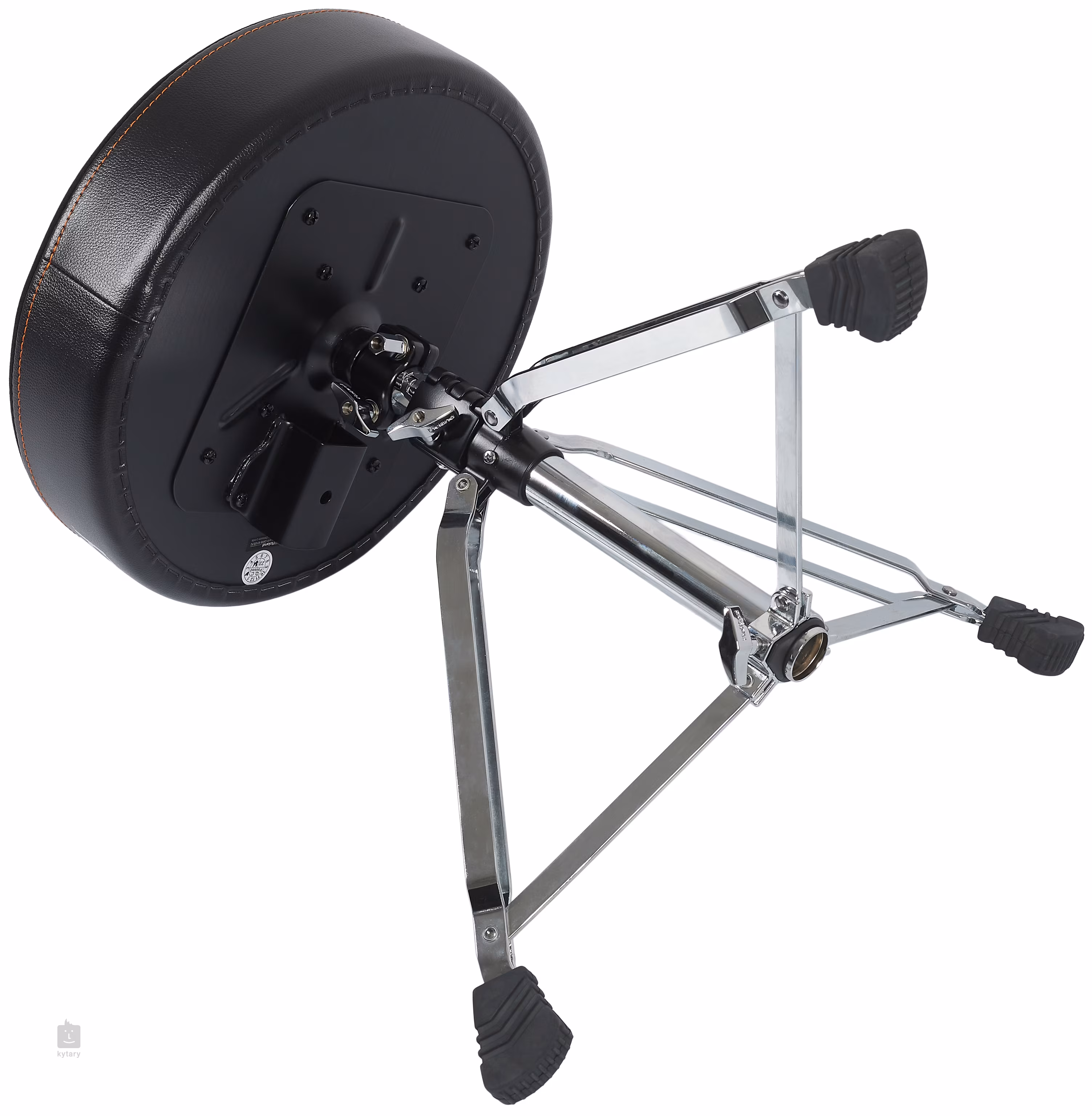 Profesjonalne siedzisko dla perkusisty zapewniające maksymalny komfort i stabilność. Okrągłe siedzisko pokryte jest po bokach winylem, wypełnieniem jest pianka, która łagodzi nacisk w najbardziej obciążonych miejscach, a oddychająca powierzchnia welurowa (welur) redukuje ciepło. Stabilna konstrukcja składa się ze statywu z podwójnymi nogami, a wytrzymały metalowy wspornik zapewnia prosty system regulacji wysokości za pomocą śrub.