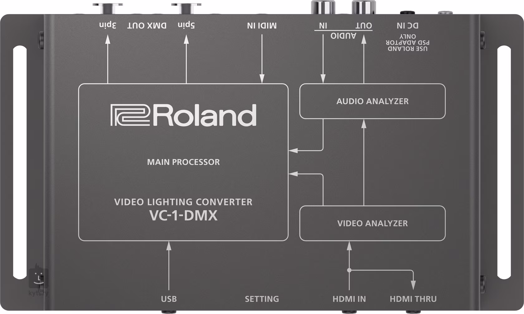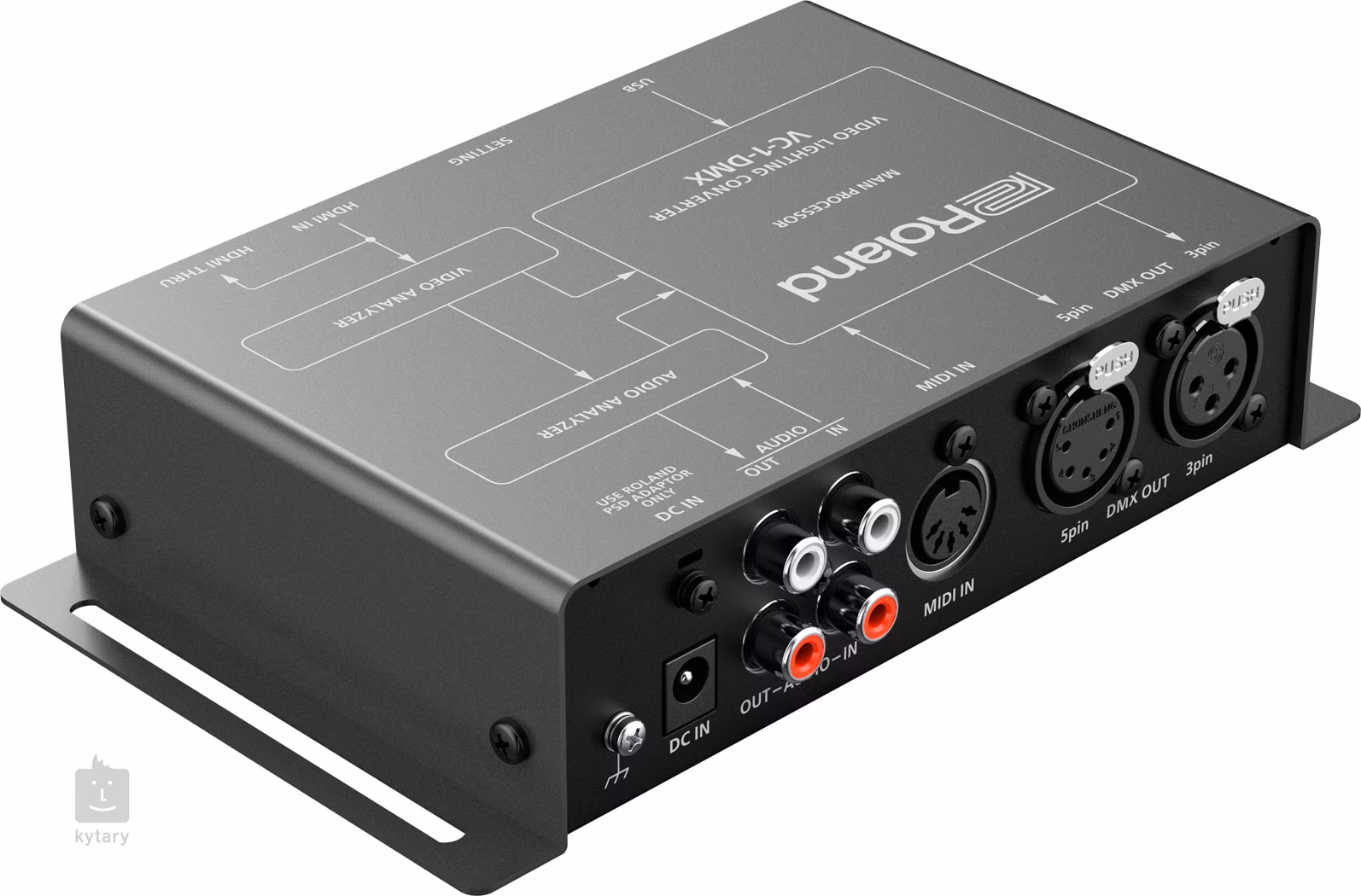 Roland VC-1-DMX to dedykowany automatyczny konwerter wideo i audio, który generuje polecenia sterujące dla oświetlenia DMX w oparciu o wejścia ze źródeł wideo i audio, eliminując potrzebę dedykowanych operatorów oświetlenia. Niezależnie od tego, czy jesteś promotorem, czy wykonawcą, VC-1-DMX wykonuje pracę za Ciebie i bez Ciebie, podczas gdy Ty możesz zająć się wszystkim innym, co musisz zrobić. Konwerter automatycznie zmienia kolor i jasność świateł w oparciu o bieżący obraz wideo i umożliwia automatyczną synchronizację z tempem muzyki. Jeśli chcesz się zaangażować i przejąć kontrolę, VC-1-DMX pozwala to zrobić za pomocą kontrolerów MIDI, elektronicznych instrumentów muzycznych lub DAW.