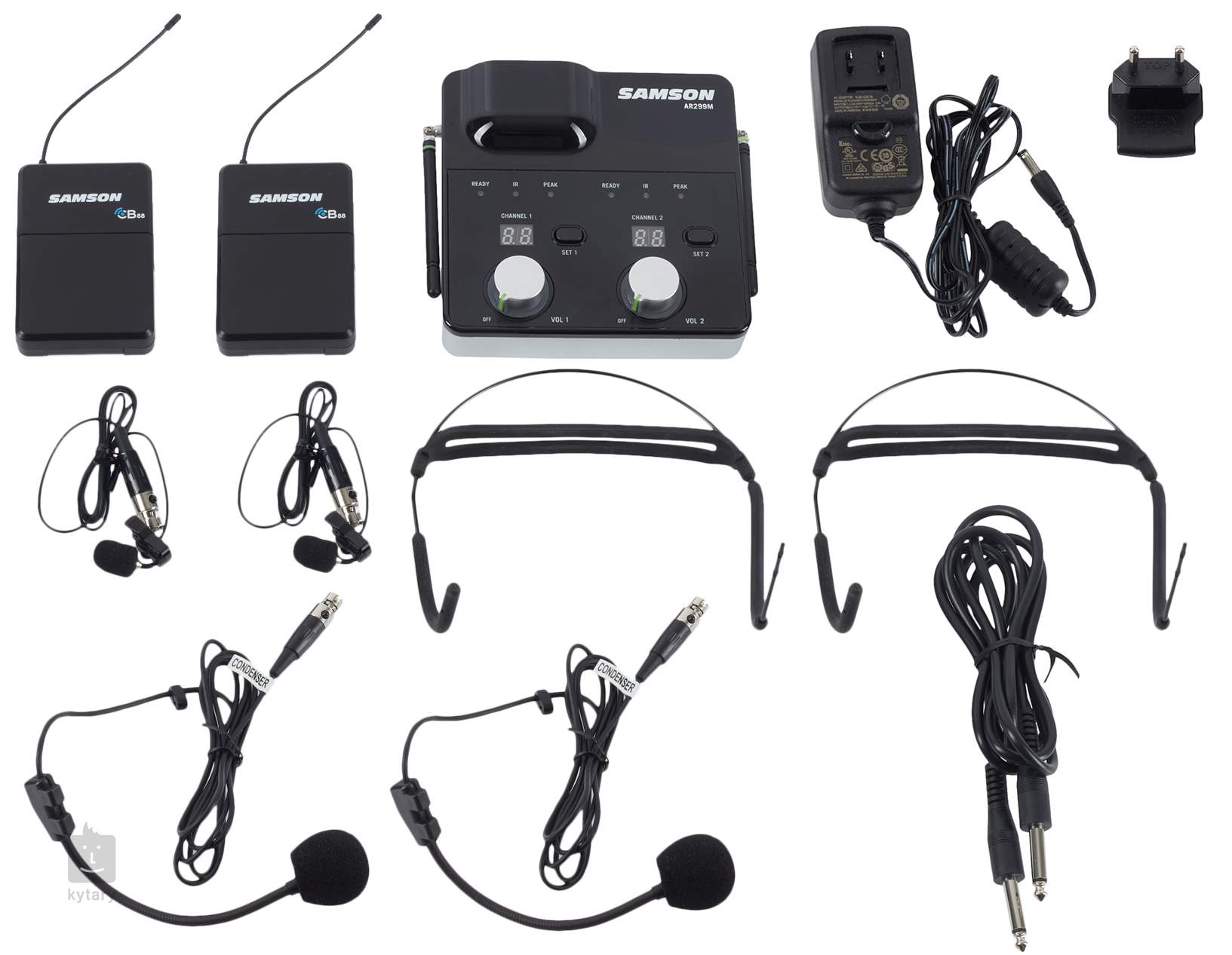 Zestaw zawiera odbiornik AR299M, 2x nadajnik CB88, 2x mikrofon HS5, 2x mikrofon LM7 i zasilacz.