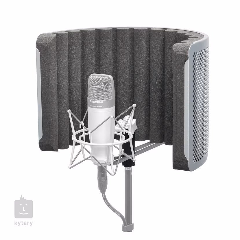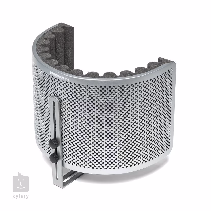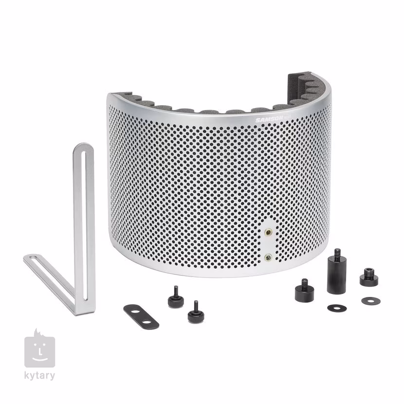 Przegroda mikrofonu. Kurtyna ta stworzy idealne środowisko do nagrywania głosu nawet w warunkach domowego studia, gdzie nie są zachowane idealne standardy akustyczne. Jednoczęściowa konstrukcja wykonana jest z perforowanego aluminium, podczas gdy wewnętrzna część wykonana jest z wysokiej jakości pianki akustycznej, która spełnia standardy przemysłowe. W zestawie znajduje się uchwyt na statyw mikrofonowy, który można przesuwać w zakresie 22cm, a ekran można przesuwać w pionie w uchwycie nawet o 16cm.
