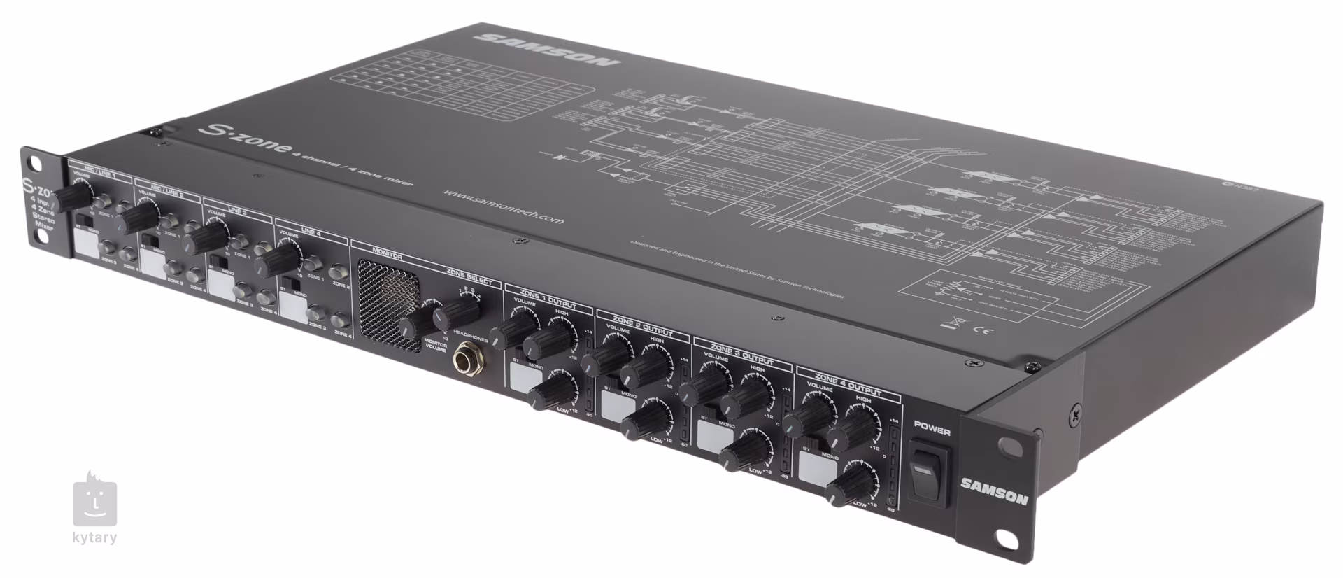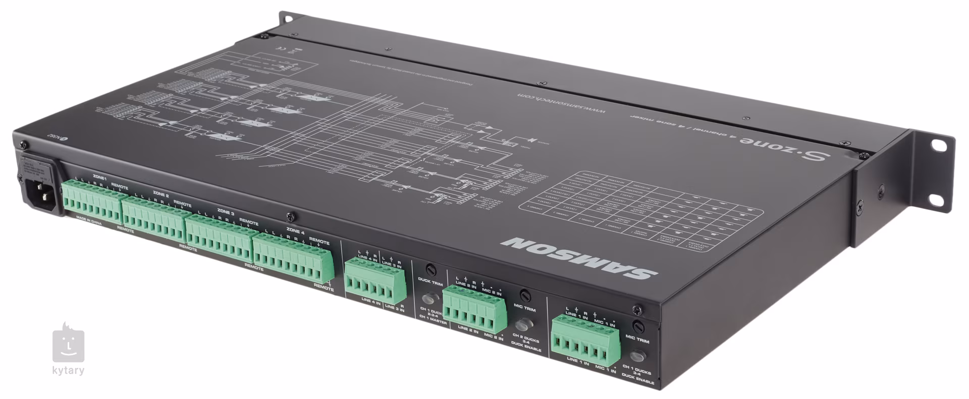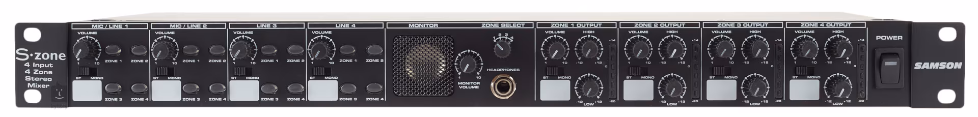 Czterośladowy mikser rackowy odpowiedni do studia, sali prób lub występów na żywo. Wyposażony w dwa wejścia mic/line z trybem Ducking, dwa wejścia CD/line, wbudowany głośnik i wyjście słuchawkowe do szczegółowego monitorowania. Każdy kanał posiada regulację głośności i dwupasmowy korektor.