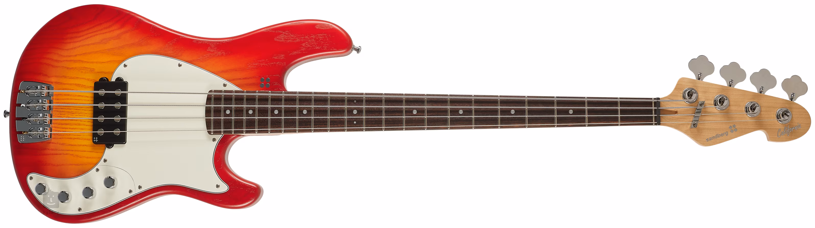 Elektryczne gitary basowe Sandberg California Central stanowią interesującą alternatywę dla muzyków poszukujących instrumentu o soczystym, wyrazistym brzmieniu humbuckera w stylu słynnych amerykańskich modeli SR. Podobnie jak inne instrumenty marki Sandberg, są one produkowane w Niemczech z najwyższej jakości materiałów przez zespół bardzo doświadczonych lutników. Korpus basu California Central MTCHSB RWFB z jesionu zdobi matowe wykończenie Cherry Sunburst, które podkreśla rysunek drewna. Do szyjki z kanadyjskiego klonu o wygodnym profilu „C” przyklejono palisandrową podstrunnicę z dwudziestoma progami. Szyjka jest przymocowana do korpusu za pomocą sześciu śrub, a orientację na podstrunnicy ułatwiają białe kropki pozycyjne. Sandberg Plus Humbucker i aktywna elektronika z trzypasmowym korektorem zapewniają basowi piękny, soczysty, przebijający się, wyraźny ton, który można łatwo dostosować do swojego stylu gry i wymagań – niezależnie od tego, czy grasz kostką, czy palcami. Stabilne strojenie gwarantuje mocne zamocowanie strun w solidnym mostku i firmowych mechanizmach. Ładne wykończenie podkreśla pergaminowa osłona. Bas jest dostarczany w wysokiej jakości pokrowcu (gig bag). Firma Sandberg oferuje swoim klientom wyjątkową możliwość skonfigurowania własnego instrumentu zgodnie z własnymi wymaganiami. Skorzystaj z tej możliwości i stwórz swój własny, oryginalny instrument. Konfigurator wygeneruje unikalny kod, który możesz nam przesłać, a my wycenimy instrument i ustalimy dalsze szczegóły. Konfigurator znajduje się na stronie internetowej Sandberg.