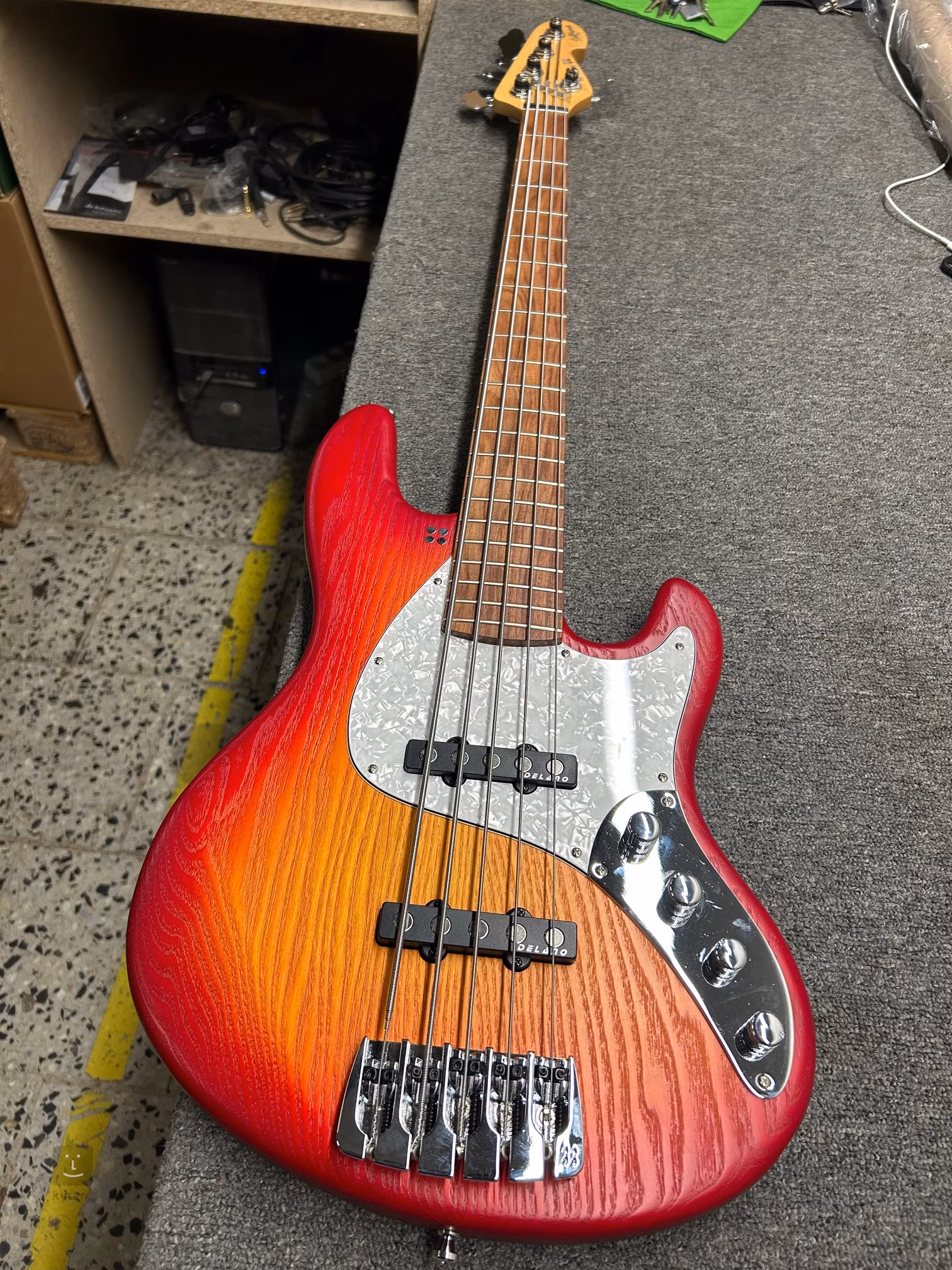 Korpus pięciostrunowego basu Sandberg California TT 5 PF Cherry Sunburst wykonany jest z jesionu. Szyjka z klonu kanadyjskiego jest przyklejona do podstrunnicy pau ferro z dwudziestoma dwoma progami. Przykręcona do korpusu za pomocą sześciu śrub, szyjka jest mocno trzymana w całkowicie precyzyjnej pozycji.