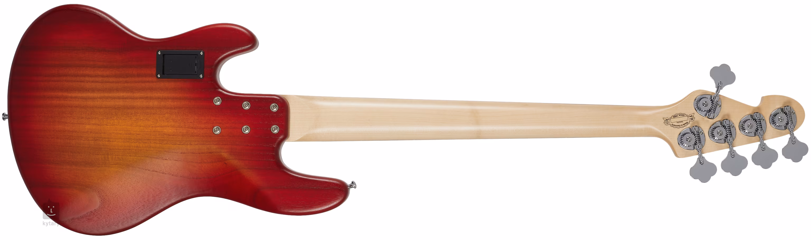 Korpus pięciostrunowego basu Sandberg California TT 5 SL PF Matte Cherry Sunburst wykonany jest z drewna pavlovnia. Szyjka z klonu kanadyjskiego jest przyklejona do podstrunnicy pau ferro z dwudziestoma dwoma progami. Przykręcona do korpusu za pomocą sześciu śrub, szyjka jest utrzymywana w całkowicie precyzyjnej pozycji.