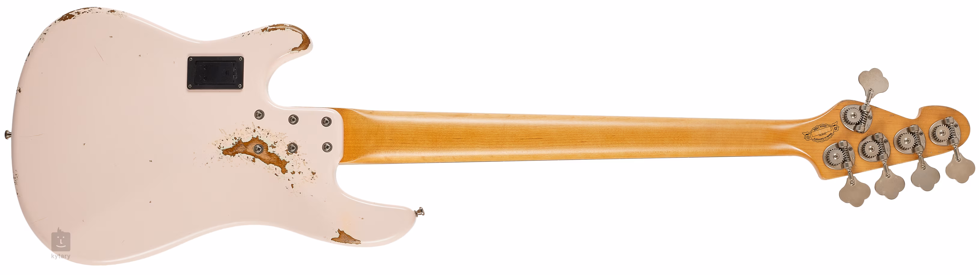 Korpus basu z olchy zdobi kolorowa powłoka Shell Pink i wykończenie z wyraźnymi elementami sztucznej patyny w postaci zadrapań i odprysków lakieru. Do szyjki z klonu kanadyjskiego, przykręconej do korpusu za pomocą sześciu śrub, przyklejono hebanowy podstrunnicę z dwudziestoma progami.