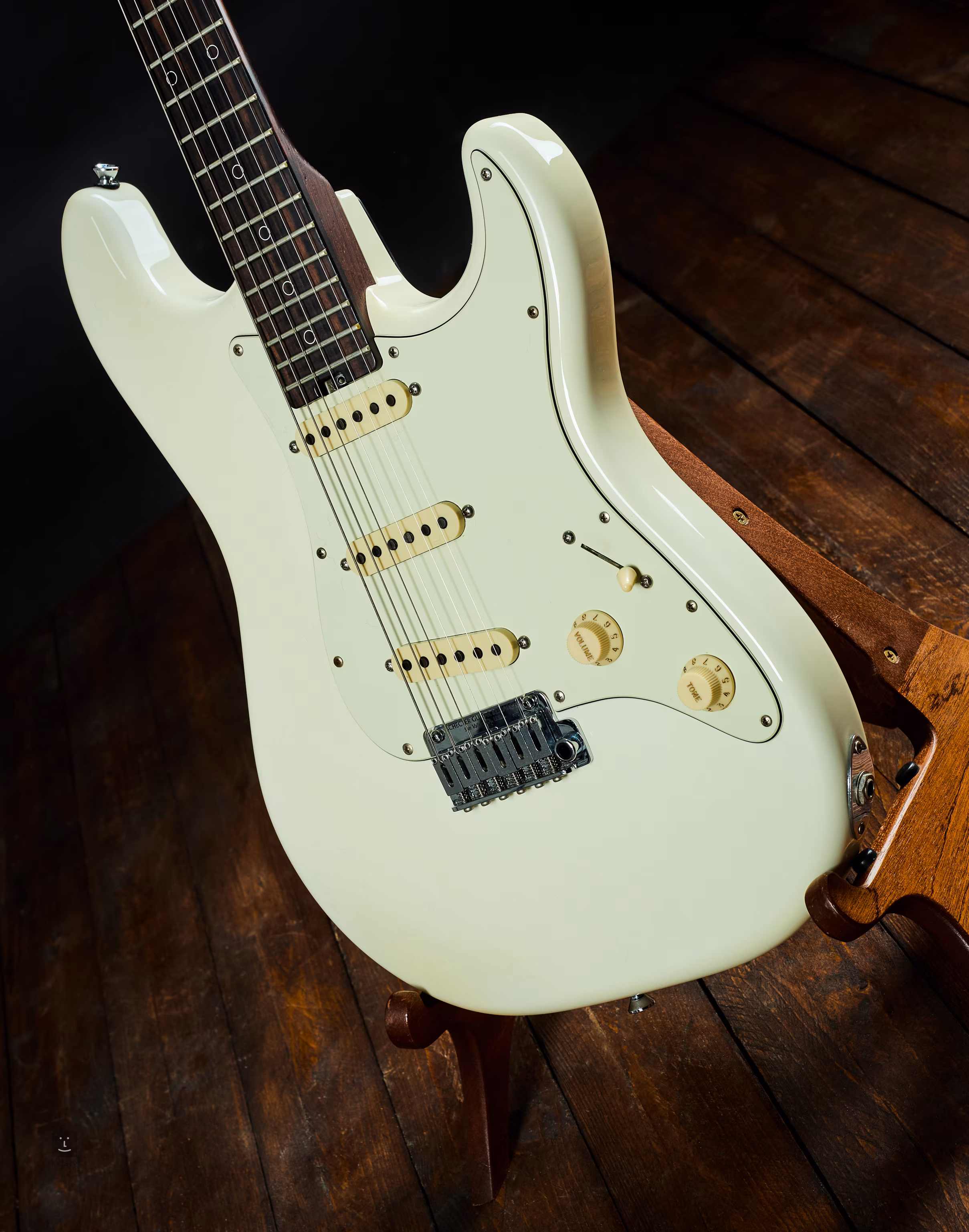 Instrument jest w całkowicie oryginalnym stanie, w idealnym stanie z bardzo niewielkimi śladami użytkowania. Sprzedawana z oryginalnym futerałem z dźwignią i certyfikatem.