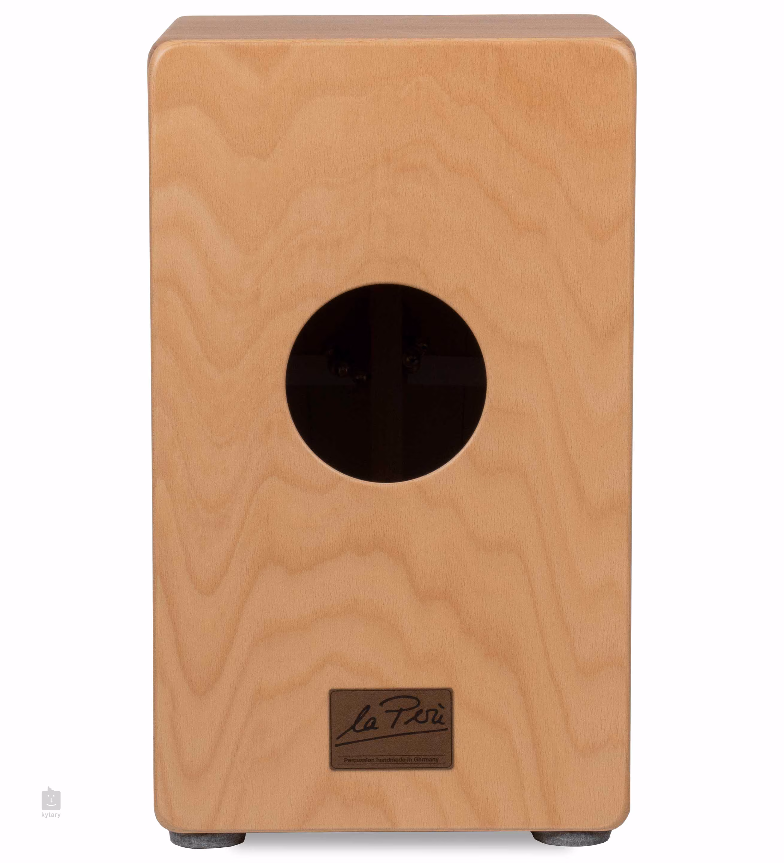 Cajon jest wyposażony w 2 x 2 struny La Per? a jego wymiary wynoszą około 30 x 30 x 50 cm.