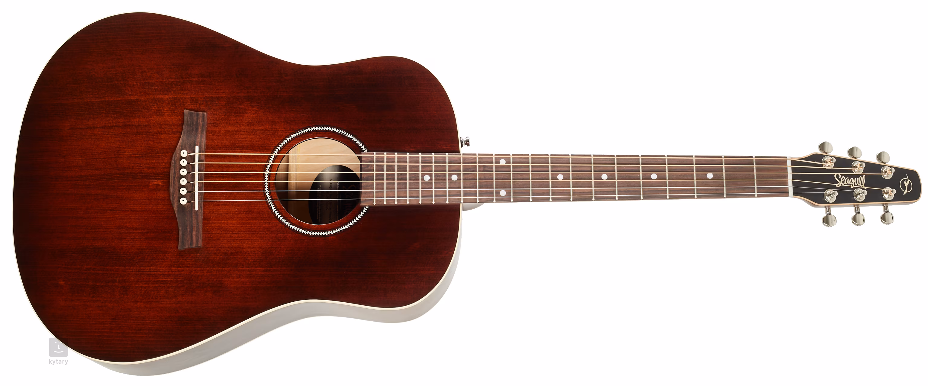 Opcje wzmocnienia dźwięku obejmują przetwornik piezoelektryczny Fishman Sonicore oraz przedwzmacniacz Fishman Presys II z regulacją głośności, dwupasmowym EQ, przyciskiem Phase do eliminacji sprzężeń i wbudowanym tunerem. Struny osadzone są w chromowanych tuning machines i palisandrowej podstrunnicy. Ładne wykonanie podkreślają: półbłyszczące wykończenie topu Burnt Umber, rozeta w jodełkę, dwustronny binding korpusu oraz logo firmy na typowej główce Seagull.