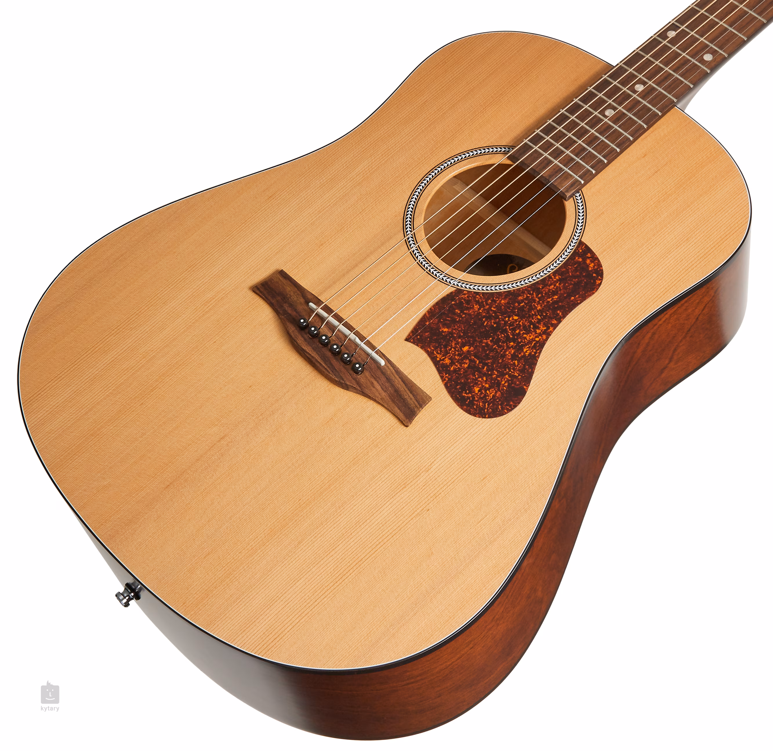 Stabilność strojenia jest gwarantowana przez wysokiej jakości uszczelniony układ mechaniczny. Stylowy wygląd instrumentu podkreśla pickguard wykonany z imitacji żółwiej skorupy, ozdobna rozeta, ciemny binding oraz logo na główce.