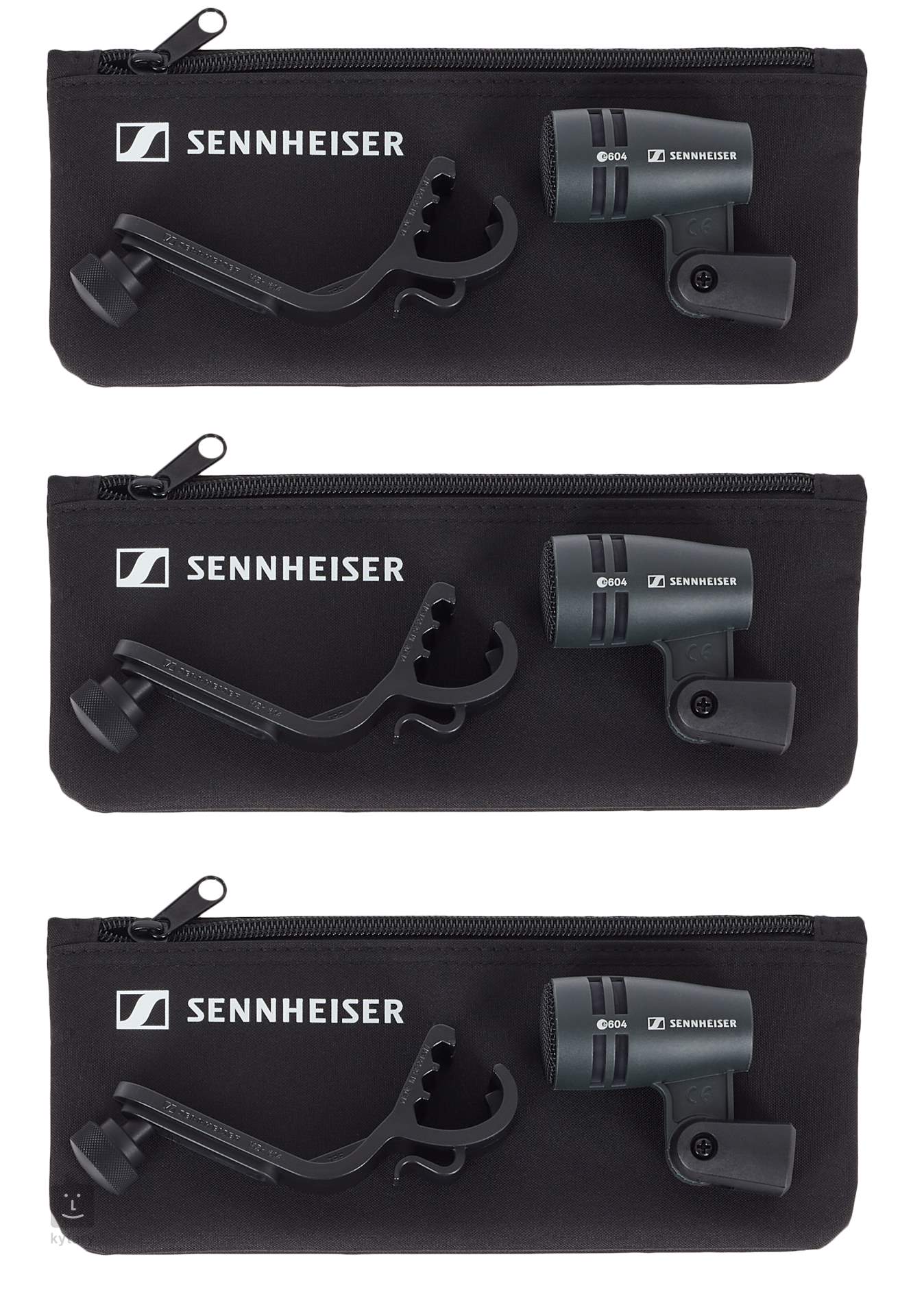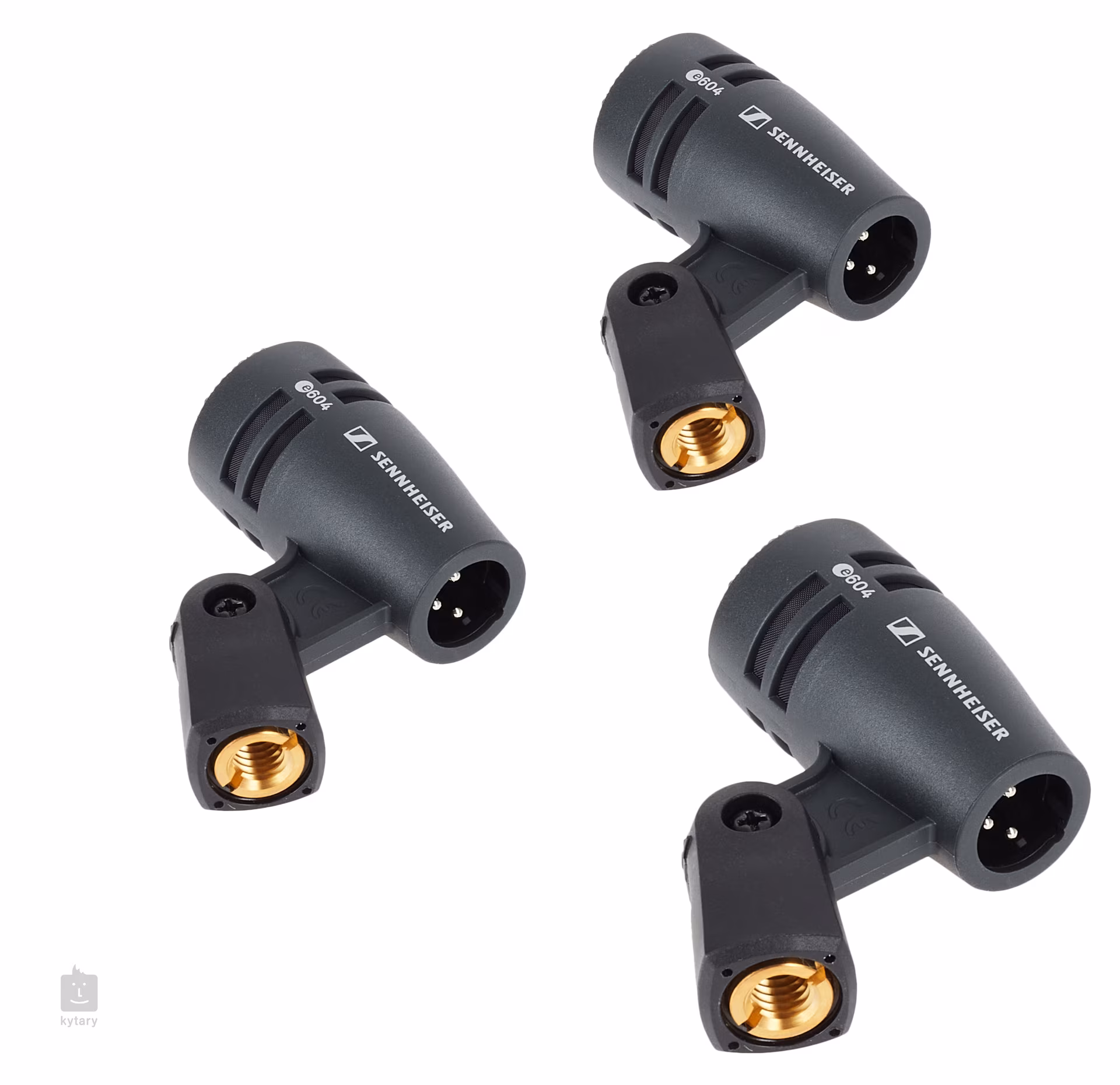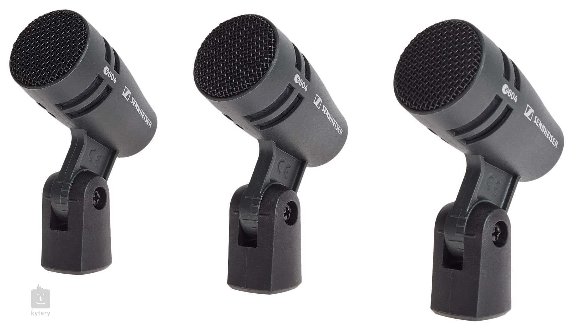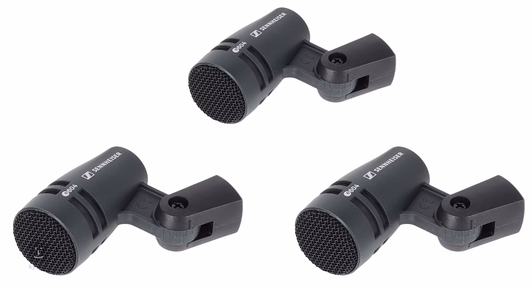 Zestaw trzech mikrofonów dynamicznych Sennheiser e 604 z wkładką kardioidalną jest idealnym narzędziem do nagłaśniania instrumentów perkusyjnych i dętych. Zintegrowany uchwyt po prostu mocuje się do obręczy perkusji lub do statywu mikrofonowego. E 604 osiąga właściwości high-endowych mikrofonów pojemnościowych, oferuje zrównoważony i czysty sygnał z niskimi zniekształceniami i może z łatwością poradzić sobie z ciśnieniem akustycznym do 160 dB. Sztywny korpus z włókna szklanego wychwytuje wstrząsy i uderzenia, eliminując jednocześnie niekorzystne odgłosy uderzeń.