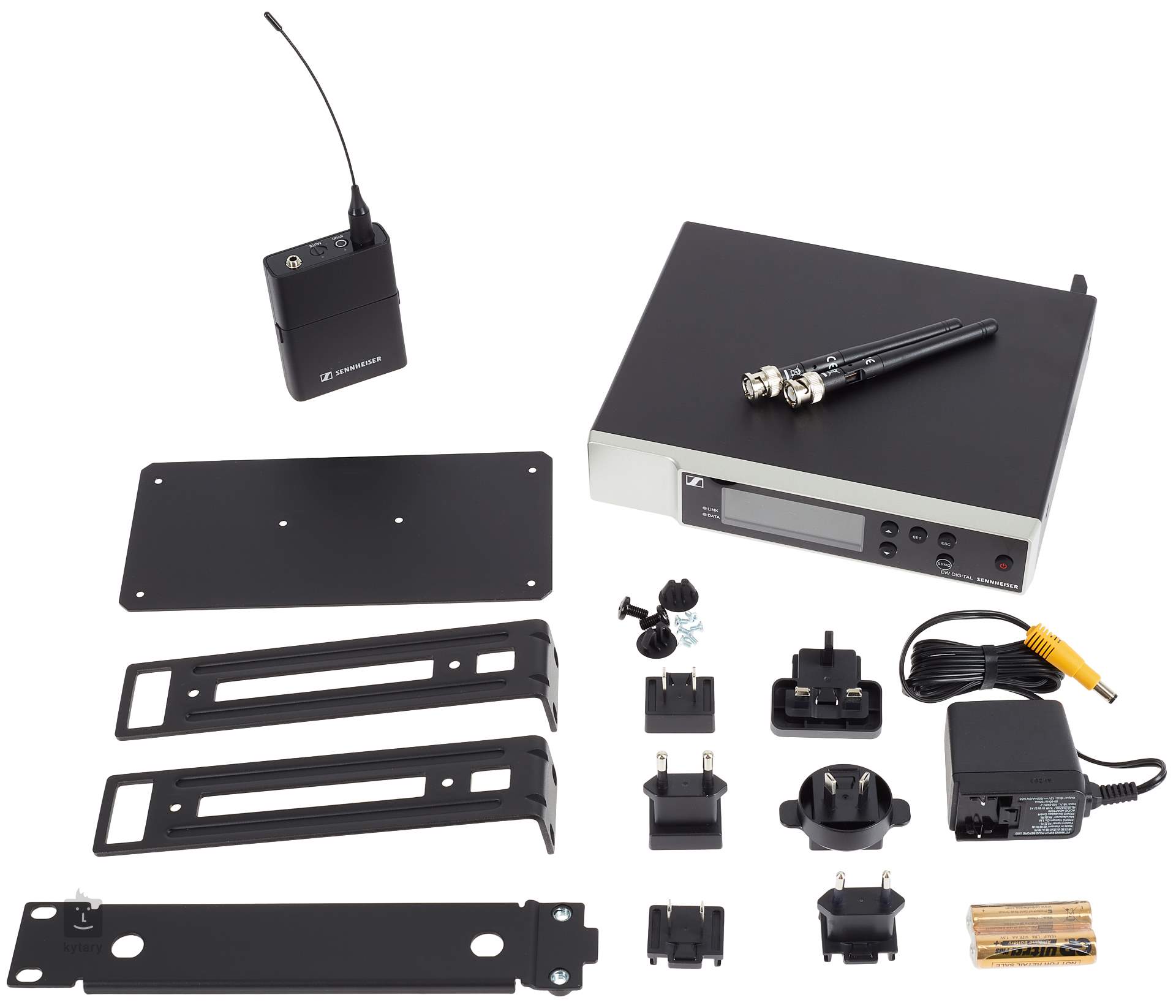 Zawartość opakowania - Odbiornik bezprzewodowy EM-D EM - nadajnik bodypack EW-D SK - Zestaw do montażu w szafie - 4 gumowe nóżki - zasilacz - 2 anteny prętowe - dokumentacja