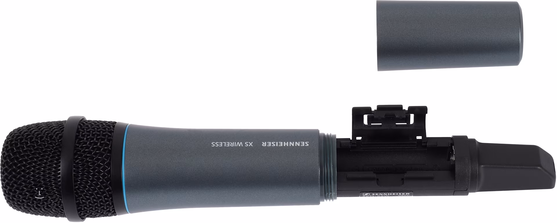 Zestaw zawiera dwukanałowy odbiornik bezprzewodowy i dwa nadajniki ręczne Sennheiser 825 z dynamiczną głowicą mikrofonową o charakterystyce kardioidalnej, zapewniającą czysty i wyraźny dźwięk. Są one zasilane 2 bateriami AA o żywotności do 10 godzin.