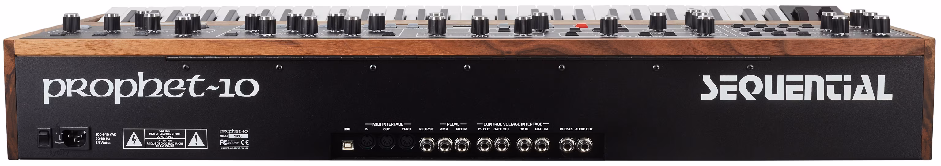 Do tego produktu chętnie zaoferujemy Państwu wykonaną na zamówienie walizkę Razzor z naszej własnej produkcji, zaprojektowaną z myślą o maksymalnej ochronie podczas transportu. Walizki produkujemy na zamówienie i dokładnie według Państwa życzeń. Inspiracje i szczegóły można znaleźć na stronie razzorcases.cz. Sequential Prophet-10 Rev4 to powrót legendarnego syntezatora Prophet, który w swoim czasie dosłownie zmienił możliwości produkcji dźwięku. Ta dziesięciogłosowa wersja kultowego syntezatora analogowego stanowi najlepsze z serii Prophet, ponieważ zawiera funkcje wszystkich trzech wersji modelu Prophet-5 (Rev1, Rev2 i Rev3). Urządzenie wykorzystuje oryginalne analogowe VCO i filtry z Rev3 zaprojektowane przez Douga Curtisa oraz filtry dolnoprzepustowe 2140 z Rev1/Rev2 zaprojektowane przez Dave'a Rossuma. Przełącznik Rev umożliwia wybór między filtrem z Rev1/Rev2 a nowszą wersją z Rev3. Przełącznik ten dostosowuje również kształt i reakcję obwiedni, aby odpowiadała ona albo dwóm pierwszym wersjom, albo trzeciej wersji. W rezultacie otrzymujemy czysty i autentyczny dźwięk analogowej legendy Prophet-5 we wszystkich jej odmianach, a to w kompaktowym formacie, który można wykorzystać podczas długich tras koncertowych, w sali prób, w studiu, a także w domu. Vintage sound Aby Prophet-10 mógł w ogóle powstać, najpierw należało szczegółowo przeanalizować oryginalny model, aż do najdrobniejszych szczegółów. Urok kultowego instrumentu vintage, którego niedoskonałości z czasem stały się jego charakterystyczną cechą i nieodłączną częścią, został przeniesiony również do tej nowoczesnej wersji. Dzięki potencjometrowi Vintage można cieszyć się prawdziwie oldschoolowym brzmieniem ze wszystkimi niewielkimi wahaniami i różnicami w reakcji i częstotliwościach poszczególnych VCO, filtrów, obwiedni i wzmacniaczy. Modulacja polifoniczna i funkcja Unison Oprócz niepowtarzalnego brzmienia oscylatorów i filtrów, dużą część klasycznego brzmienia Prophet stanowi również technologia Poly Mod (modulacja polifoniczna), która pozwala modulować określone parametry innymi parametrami. W tym przypadku można modulować częstotliwość lub szerokość impulsu oscylatora A lub filtra dolnoprzepustowego i wykorzystać do ich modulacji obwiednię (Filter Envelope) lub oscylator B. Kolejną przydatną funkcją jest tryb Unison, w którym Prophet-10 zachowuje się jak syntezator monofoniczny, umożliwiając granie tylko jednego dźwięku w danym momencie, przy czym dźwięk ten może być generowany przez nawet dziesięciogłosową polifonię. Dzięki temu można przepuścić jeden ton przez nawet 20 oscylatorów, tworząc potężny, bogaty dźwięk. Dynamika z aftertouch i funkcja Bi-timbral Chociaż zadaniem było stworzenie nowego Propheta jak najbardziej wiernego oryginałowi, konstruktorzy nie mogli się powstrzymać i dodali kilka nowoczesnych ulepszeń zwiększających ekspresję. Dzięki temu dodano dynamiczną klawiaturę z funkcją aftertouch, która otwiera przed użytkownikami zupełnie nowe funkcje i możliwości twórcze. Prophet-10 posiada również funkcję bi-timbral, co oznacza, że można go podzielić na dwa pięciogłosowe programy. Można je następnie nakładać na siebie, tworząc bogate struktury akordowe i tonalne, lub podzielić klawiaturę na dwie niezależne strefy i wykorzystać w każdym zakresie inny program. Intuicyjny panel sterowania, klawiatura i obudowa Syntezator posiada przejrzysty panel sterowania, w którym szybko się zorientujesz. Każda z funkcji ma swoją własną sekcję, która jest wyraźnie wyodrębniona i oznaczona. Dzięki temu ustawienie wszystkich parametrów będzie łatwiejsze niż kiedykolwiek wcześniej. Instrument jest ponadto wyposażony w 200 fabrycznych i 200 użytkowych presetów, wśród których nie brakuje 40 presetów z 1978 roku, które w swoim czasie znalazły zastosowanie w niezliczonych nagraniach i ścieżkach dźwiękowych do filmów. Prophet-10 jest wyposażony w najwyższej klasy półwyważoną klawiaturę Fatar o zakresie pięciu oktaw. Jego stalowa konstrukcja jest ozdobiona ręcznie barwionym korpusem z drewna orzechowego – rysunek i kolor drewna mogą się znacznie różnić w zależności od egzemplarza, więc możesz mieć pewność, że Twój instrument będzie całkowicie wyjątkowy. Na tylnym panelu znajduje się interfejs MIDI (In, Out, Thru), USB do dwukierunkowej komunikacji MIDI, wyjście dla zewnętrznego przełącznika nożnego (Release) oraz dwa wejścia dla pedałów (Amp, Filter). Urządzenie posiada również dwa wejścia CV (Control Voltage) i dwa wyjścia CV do podłączenia z syntezatorami modułowymi i innymi kompatybilnymi urządzeniami. Na koniec znajduje się wyjście słuchawkowe i główne wyjście audio. Do zasilania służy wyjście IEC z uniwersalnym napięciem 100-240 V. Prophet-10 to instrument, który pozwala tworzyć dźwięki całkowicie zgodnie z własnymi wyobrażeniami. Dzięki takiemu urządzeniu fantazja nie ma granic. Wystarczy puścić wodze wyobraźni i można zacząć odkrywać zupełnie nowe wymiary dźwiękowe.