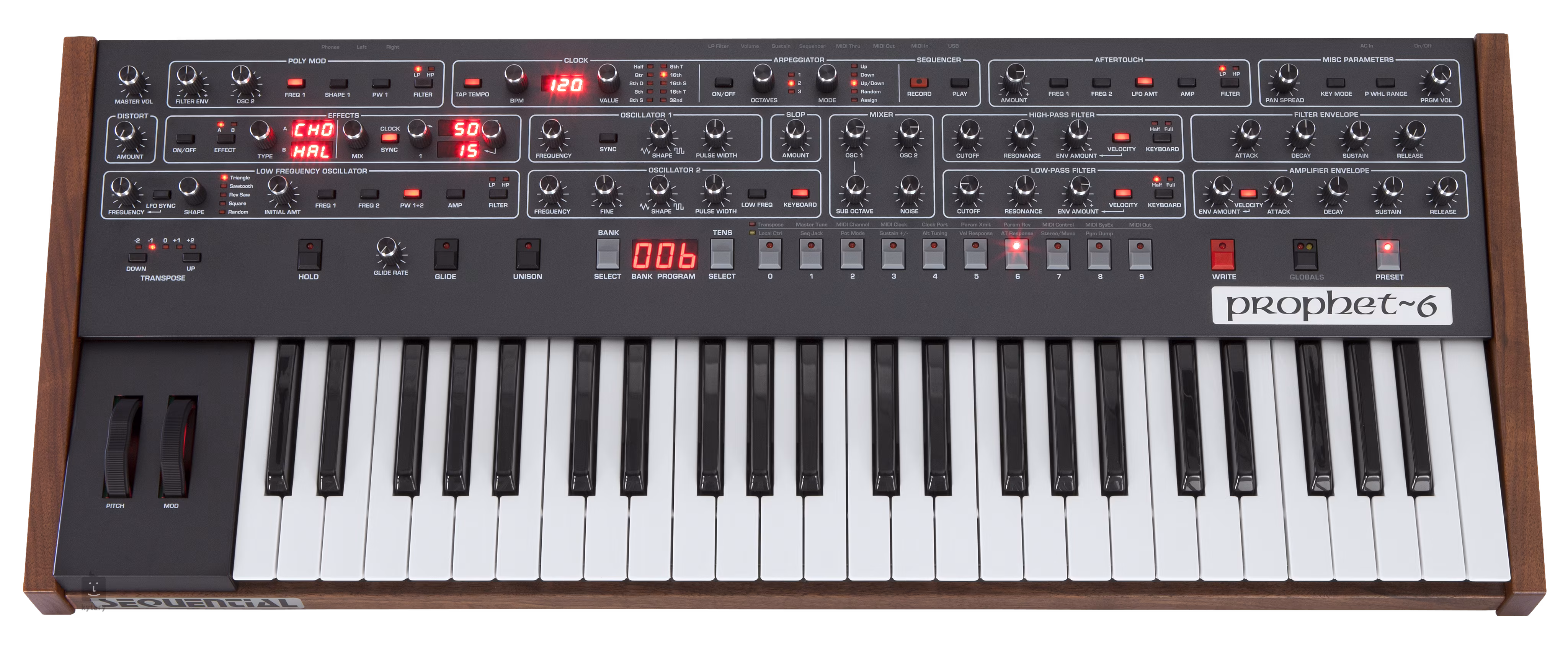 Polifoniczny syntezator Sequential Prophet 6 opiera się na sukcesie legendarnego Prophet 5, dzięki któremu jego twórca Dave Smith przeszedł do historii syntezy dźwięku. Nie jest to jednak zwykła rewizja oryginalnego modelu. Prophet 6 łączy w sobie najlepsze cechy Prophet 5, takie jak najwyższej jakości analogowe VCO, filtry i wzmacniacze, ale oferuje również wiele dodatkowych funkcji, w szczególności polifoniczny sekwencer, apreggiator i zestaw efektów studyjnej jakości. Rezultatem jest ciepłe i organiczne analogowe brzmienie połączone z nowoczesną technologią, stabilnością i niezawodnością.