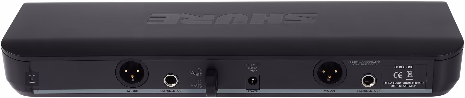 W zestawie znajduje się odbiornik BLX 88, 2x nadajnik/mikrofony SM 58 oraz zasilacz.
