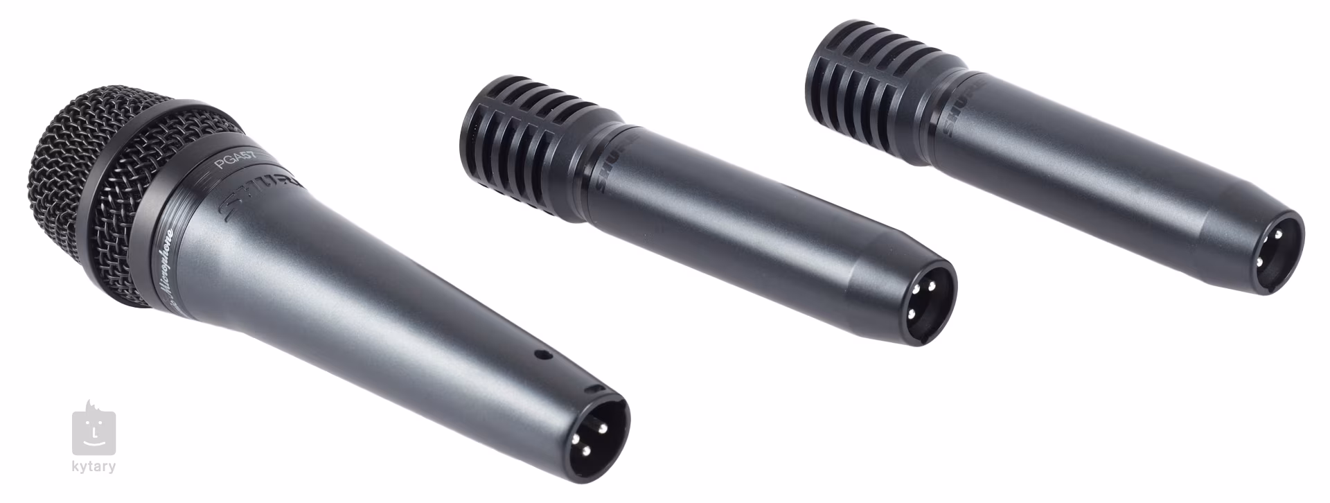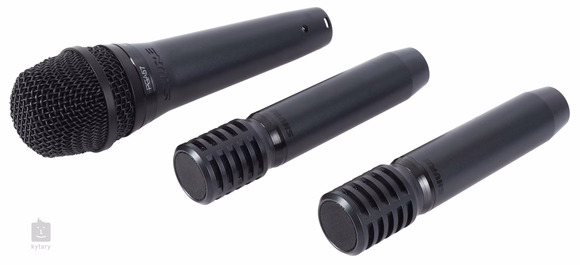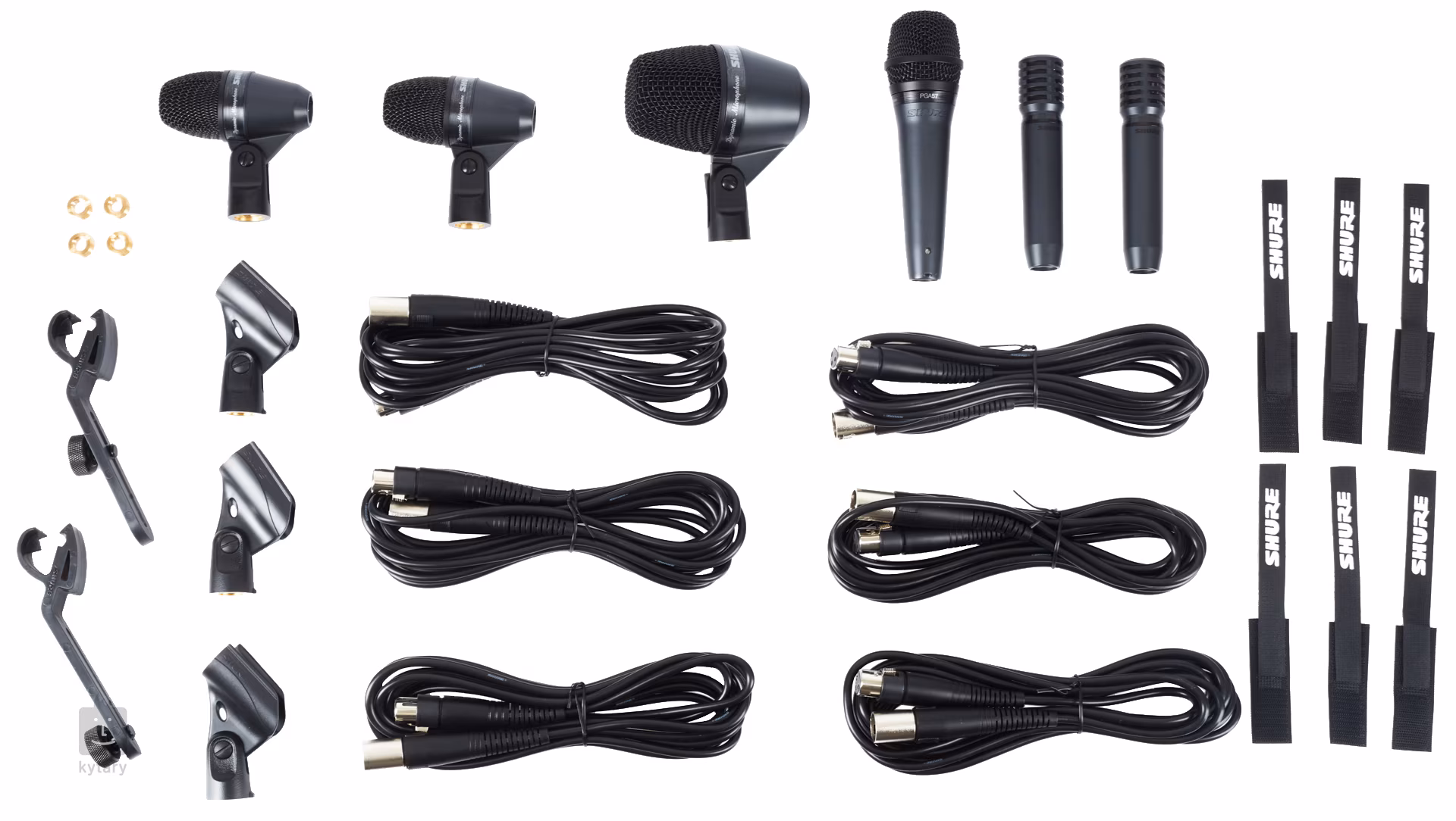 Zestaw zawiera 2x PGA56, 1x PG57, 1x PG52, 2x PGA81, 3x A25D, 2x AP56DM, 6x kable XLR, futerał ochronny