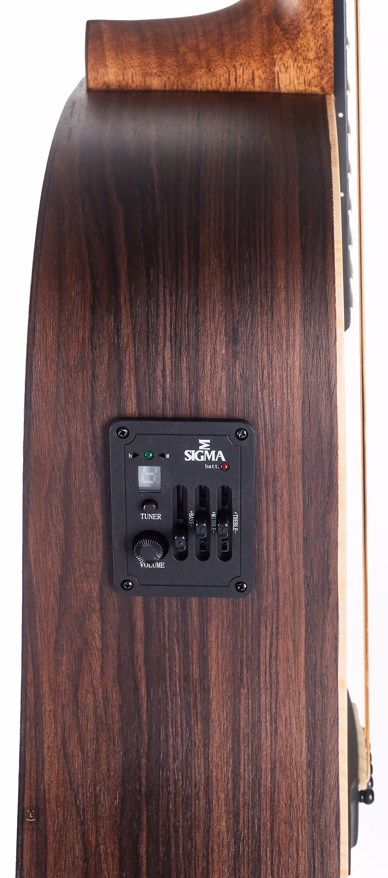 Sigma DTCE to pół-masywna gitara elektroakustyczna typu dreadnought. Jest to dobrze wykonany instrument o dobrych parametrach gry i brzmienia, który dzięki braku istotnych dodatków konstrukcyjnych, czyli wszystkiego co nie wpływa na brzmienie instrumentu, można kupić w przystępnej cenie.