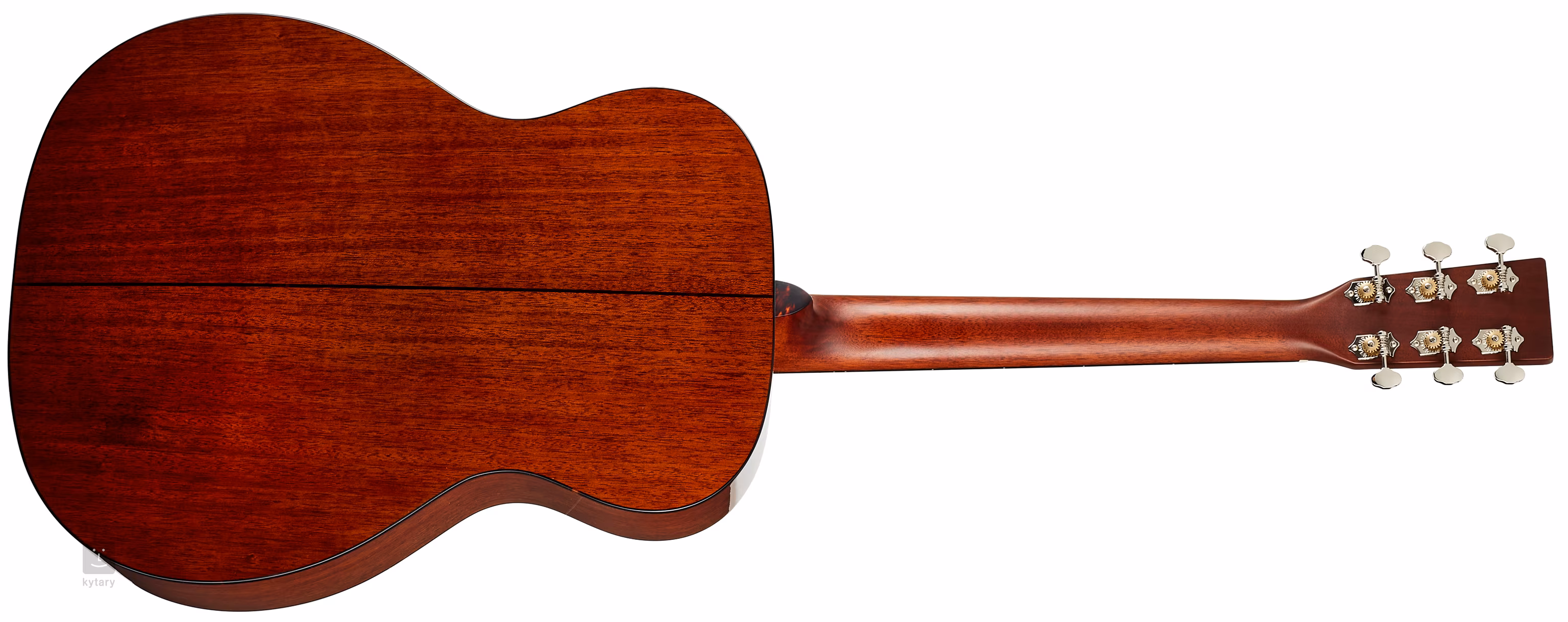 Wszechstronna gitara masywna S000M-18 posiada popularny kształt "triple-neck". Przednia część instrumentu wykonana jest z litego świerku Sitka, natomiast boki i tył z mahoniu. Mahoniowa szyjka, standardowo połączona z korpusem na czternastym progu, przyklejona jest do hebanowej podstrunnicy o dwudziestu progach. Kropki pozycyjne ułatwiają poruszanie się po powierzchni podstrunnicy.