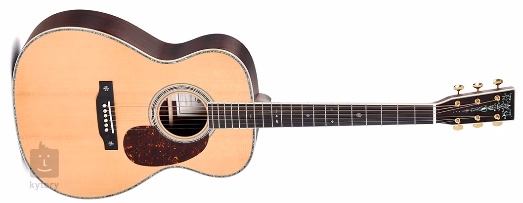 Struny są trzymane w otwartych tunerach Grover z kołkami Butterbean i hebanową podstrunnicą. Zerowy próg i kompensowane siodełko z kości zapewniają idealne przenoszenie drgań strun. Stylowe wykonanie podkreślają złote okucia, pickguard z imitacji skorupy żółwia, obwodowe wykończenie korpusu wraz z zakładką pickguarda oraz znaczniki pozycji z masy perłowej i inkrustacja na główce.