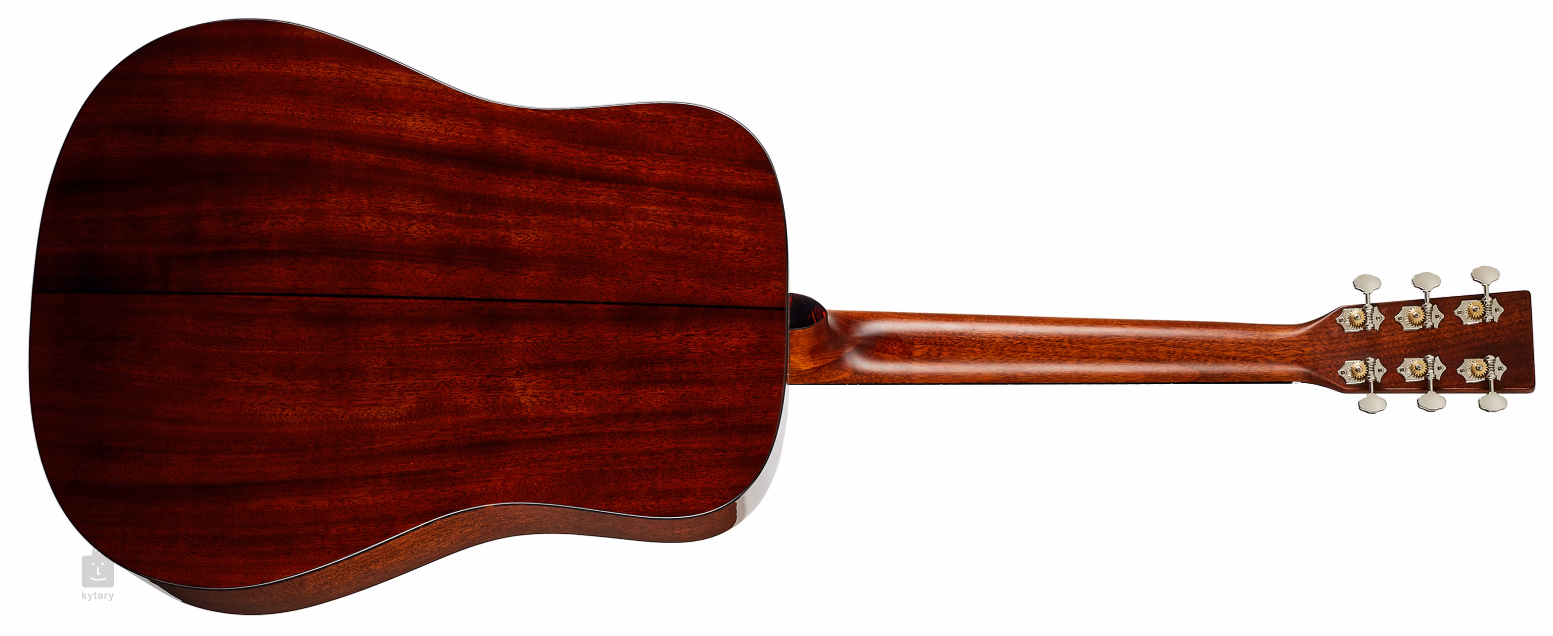 Struny są osadzone w chromowanych otwartych tunerach Grover. Frezy zerowe i siodełkowe wykonane z kości gwarantują idealne przenoszenie drgań na struny. Tradycyjne akcenty, takie jak binding na obwodzie, rozeta i imitacja żółwia w pickguardzie podkreślają ładne wykonanie.