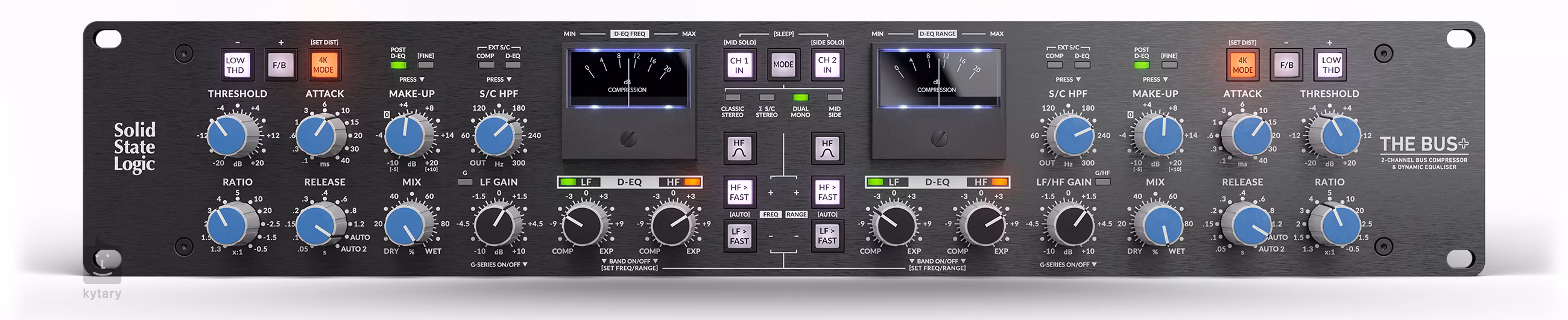 Legendarny kompresor studyjny SSL BUS otrzymał zaktualizowaną wersję BUS+, która oferuje dużą moc i atak. Ten kompresor do montażu w racku oferuje najlepsze, co można uzyskać w studiu. Świetnie radzi sobie z perkusją, gitarą akustyczną, wokalem i oczywiście kolorowym nasyceniem ścieżek i końcowego miksu.