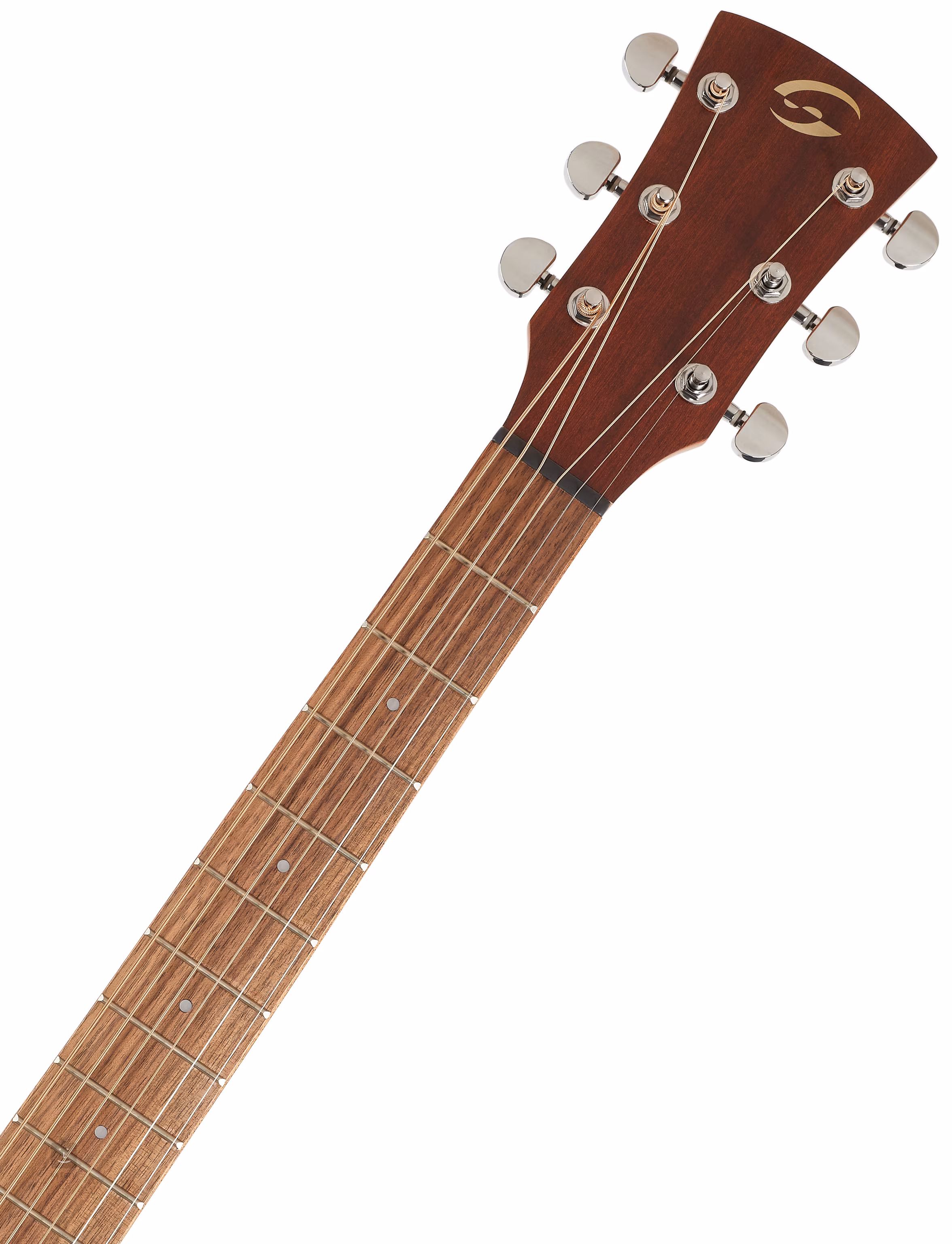 Struny są utrzymywane przez chromowane, odlewane maszynki do strojenia i orzechową podstrunnicę. Stylowe wykończenie podkreśla satynowe wykończenie w kolorze żółtego sunburst z otwartymi porami oraz mahoniowy binding i oparcie ramion.