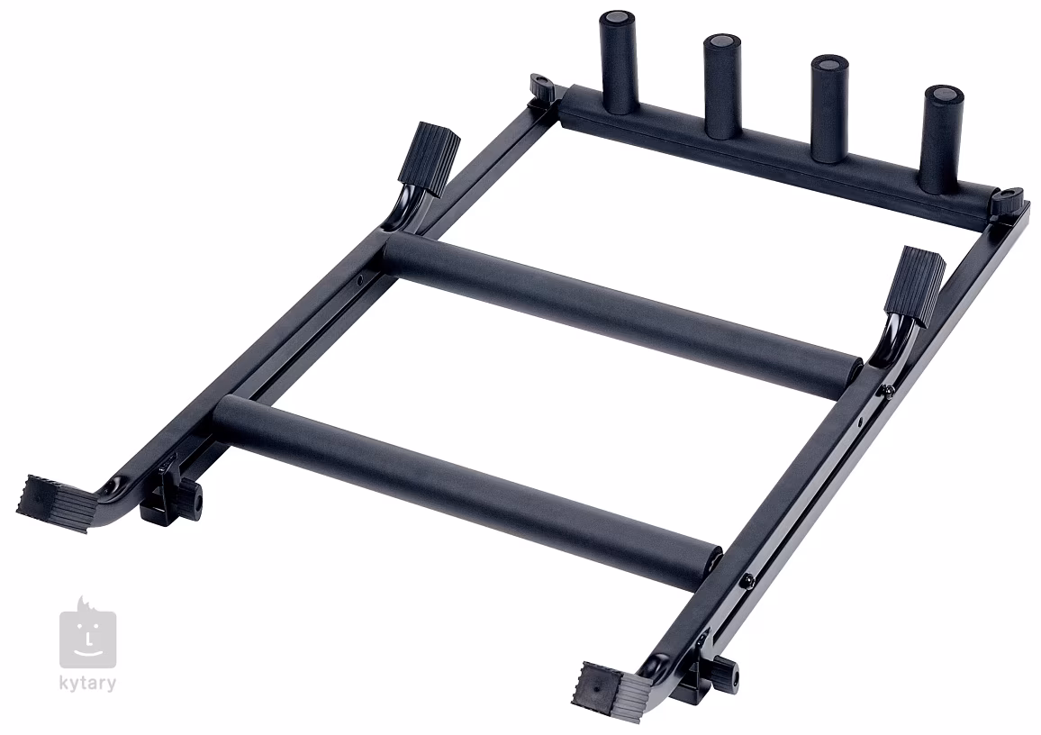 Stojak z solidną metalową konstrukcją dla trzech gitar elektrycznych, około dwóch gitar akustycznych/basów. Części stykające się z instrumentami są gumowane, aby zapobiec uszkodzeniu lakieru gitar. Stabilność stojaka gwarantuje podstawa na czterech nogach. Po złożeniu zajmuje minimalną ilość miejsca, co czyni go idealnym wyborem do domu i grania na żywo połączonego z podróżowaniem.