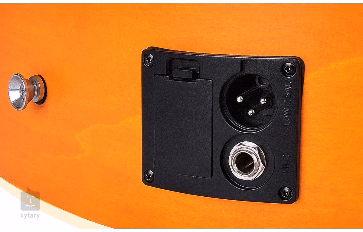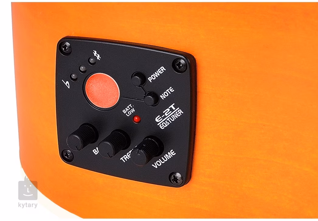 Wzmocnienie dźwięku zapewnia aktywna elektronika E-2T z dwupasmowym korektorem i wbudowanym tunerem. Wyjścia XLR i jack 6,3 mm z gitary zapewniają maksymalną elastyczność.