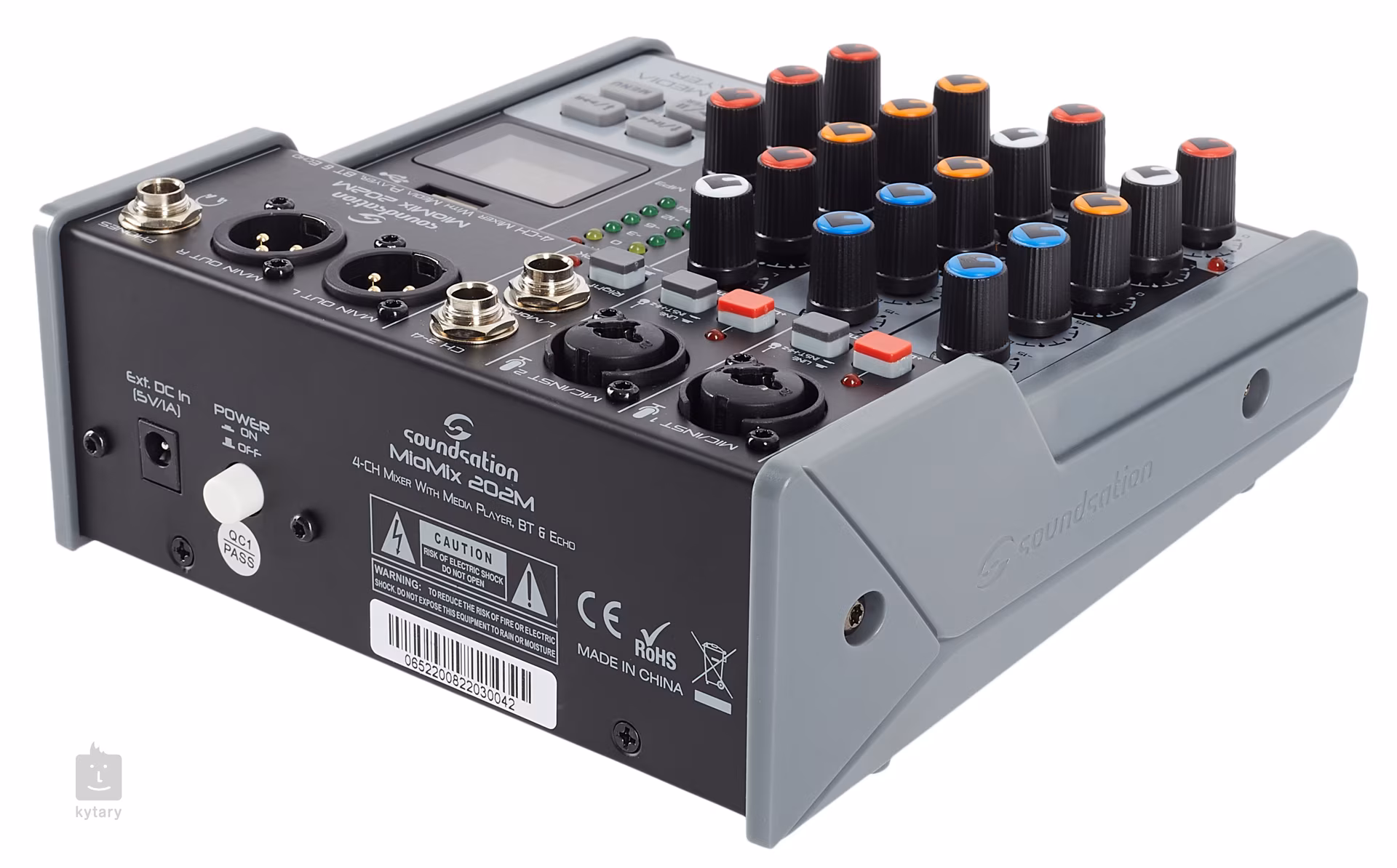 Miomix 202M to czterokanałowa konsola mikserska z dwoma połączonymi wejściami XLR/TRS (tutaj można podłączyć mikrofony, instrumenty elektryczne lub sygnały liniowe), dwoma wejściami liniowymi, dwoma wyjściami XLR do PA, wyjściem słuchawkowym do szczegółowego monitorowania. Każdy kanał można wyregulować za pomocą dwupasmowego korektora, ustawić panoramę, a także zmiksować efekt echa. Dostępne jest zasilanie phantom dla mikrofonów pojemnościowych. Sześciopoziomowy wskaźnik LED i podświetlany wyświetlacz zapewniają podgląd konfiguracji.