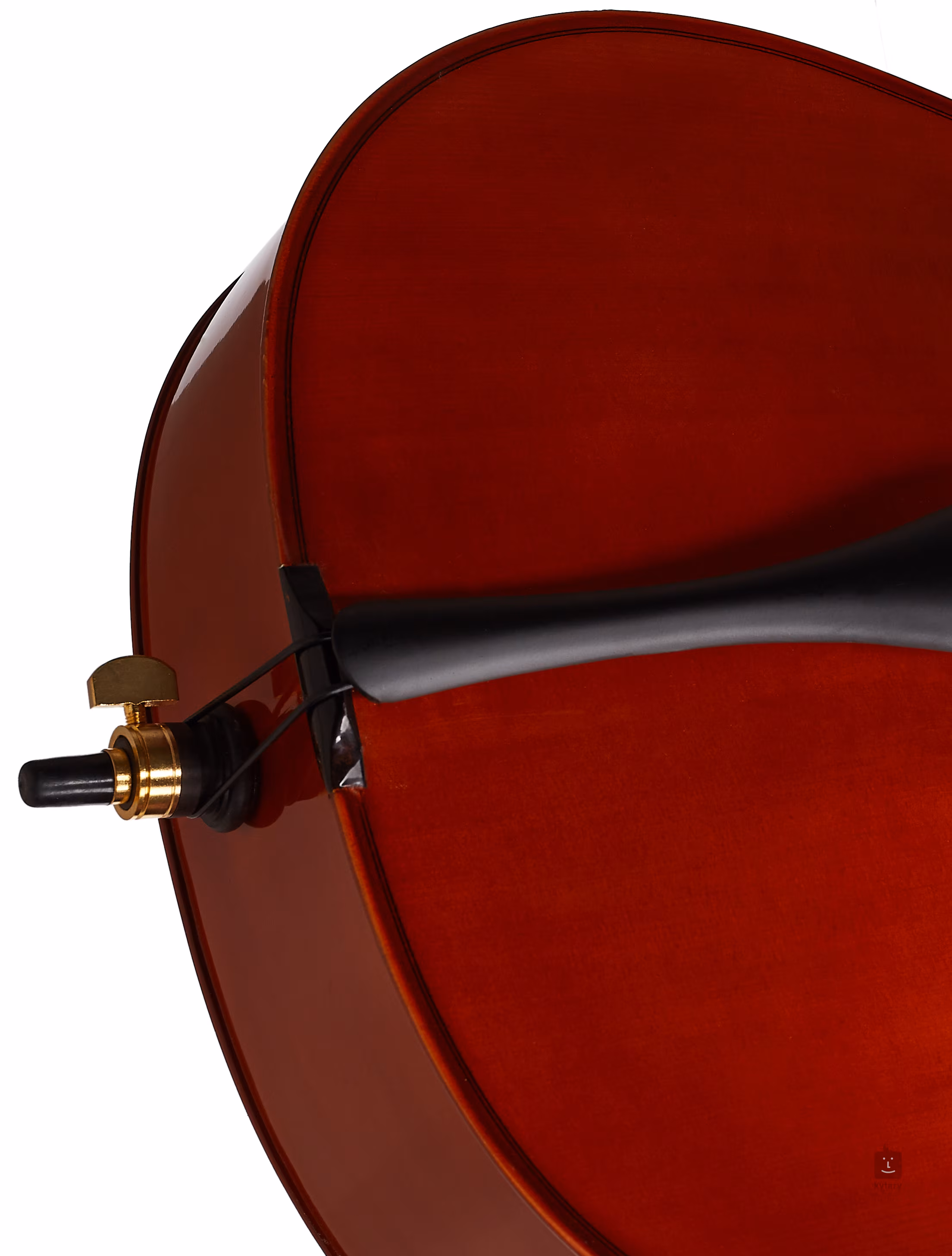 Wiolonczela jest dostarczana w komplecie z wyściełanym futerałem i smyczkiem o ośmiokątnym przekroju z naturalnymi żyłkami.