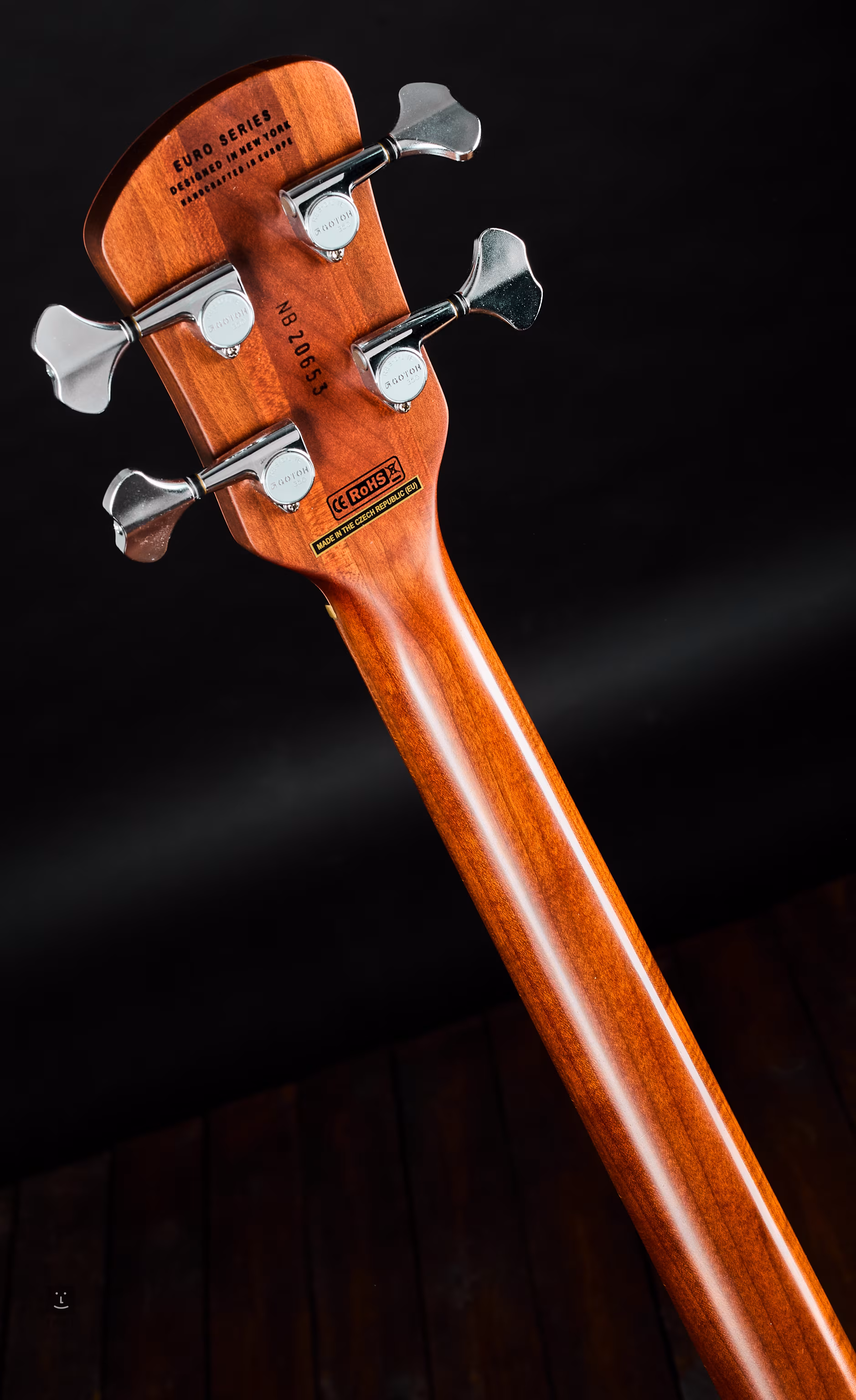 Model Euro RST 4 oferuje niezwykłą kombinację drewna o bardzo niskiej masie – szyjka jest wykonana z klonu, który został poddany specjalnej obróbce termicznej w celu dodatkowego dojrzewania materiału; podstrunnica jest wykonana z tego samego materiału; boki korpusu są wykonane z drewna paulownia, uzupełnione blatem z wyselekcjonowanego, gęsto słojowanego klonu.