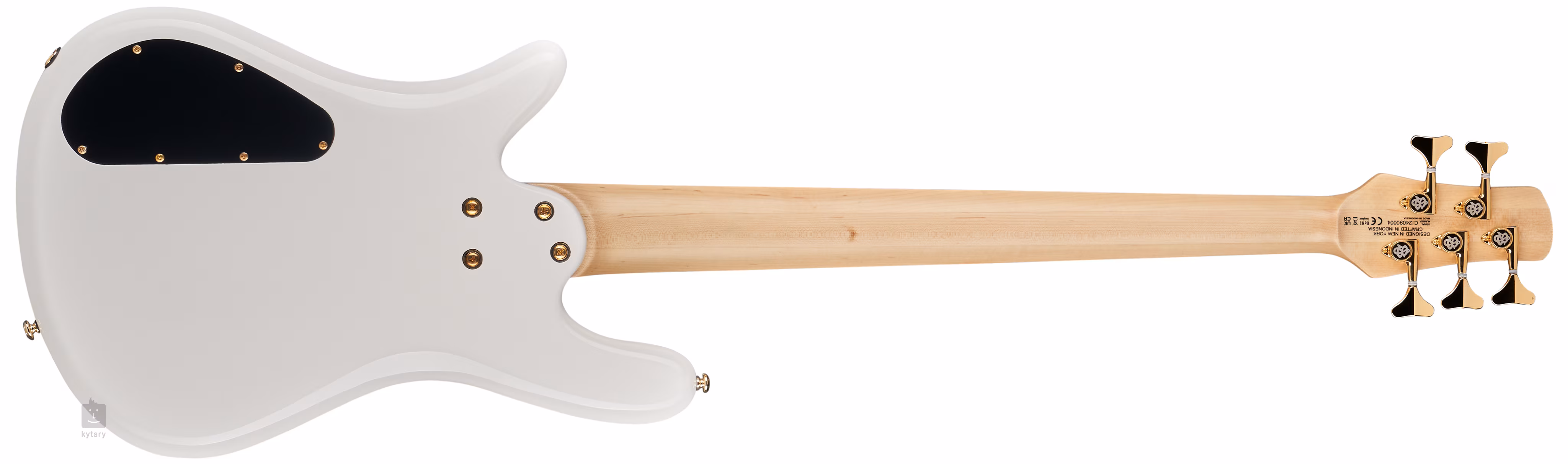Wygodny, ergonomicznie ukształtowany korpus elektrycznej gitary basowej Icon NS-5, Bolt-On, White Gloss jest wykonany z olchy. Do trójczęściowego gryfu z klonu przyklejono palisandrową podstrunnicę z dwudziestoma progami typu Jumbo. Profil gryfu określony przez zespół Custom Shop SPECTOR gwarantuje porównywalne wrażenia i komfort gry z amerykańskimi modelami high-end tej marki. Orientację na podstrunnicy ułatwiają ozdobne znaczniki pozycji (Crown inlays).